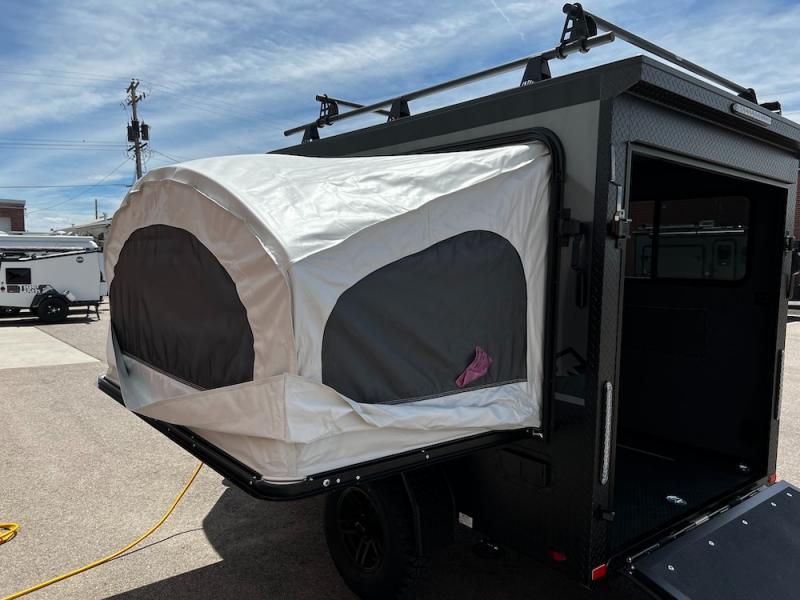 The inTech RV Flyer travel trailers and toy hauler expandables are ready for adventure whenever you are! With the all-aluminum, all-tube cage frame, the Flyer has been built with lightweight and long-lasting materials so that you can enjoy your unit for many, many years. The Flyer has a rugged design so that you can confidently explore new territory and go where traditional RVs cannot. The Flyer has a 2" rear receiver rated for 175 pounds which allows you to bring along your bikes, and the Bluetooth stereo has two speakers you can always have your best music playing. The optional roof rack will allow you to bring along kayaks, and there are more available options depending on the model you choose.
