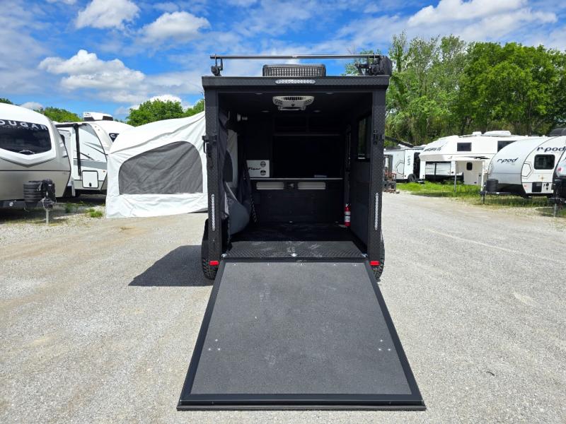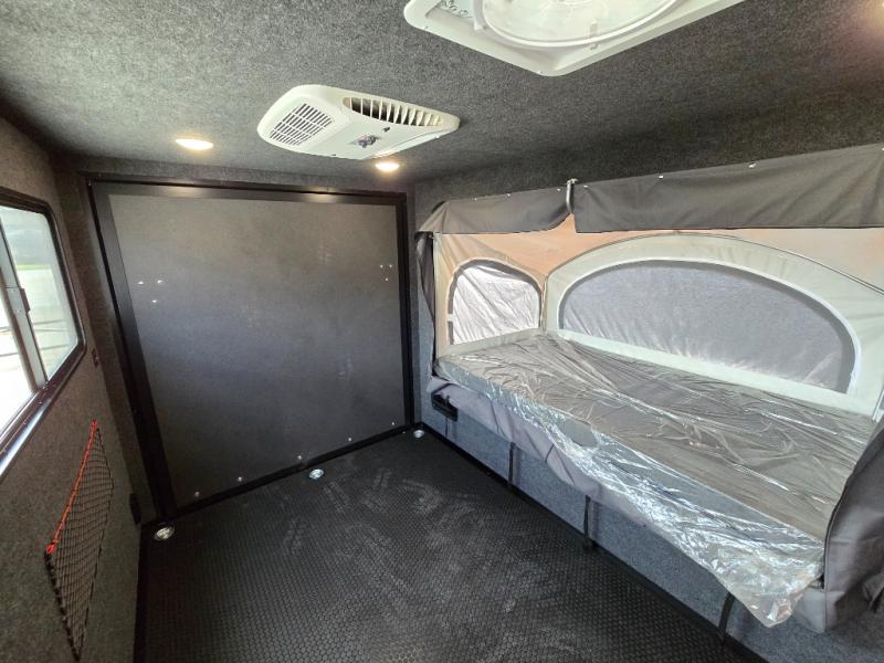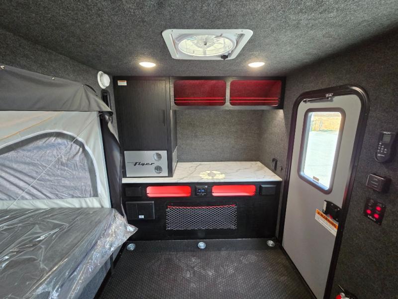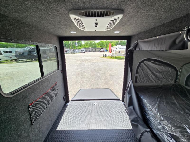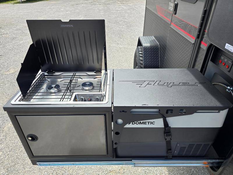 Not only is this Flyer toy hauler built to go where most traditional RVs cannot, but it is also built with a standard rear ramp or optional double rear doors, and six tie-down rings so that it can also serve as the perfect cargo transport too! The interior is spacious with its 46" x 81" tip-out bed, and if you add the second optional tip-out bed, you'll have an amazing amount of space on the inside. This expandable toy hauler is very functional, but you can make it even more enticing by adding optional Adventure Package that comes with an A/C, off-road tires, a roof rack, plus a slide out kitchen! This will allow you to cook wherever you choose to camp. The dry weight for this unit ranges from 1,580-2,110 LBS, the tongue weight ranges from 250-485 LBS, and the net carrying capacity ranges from 880-1,410 LBS.
