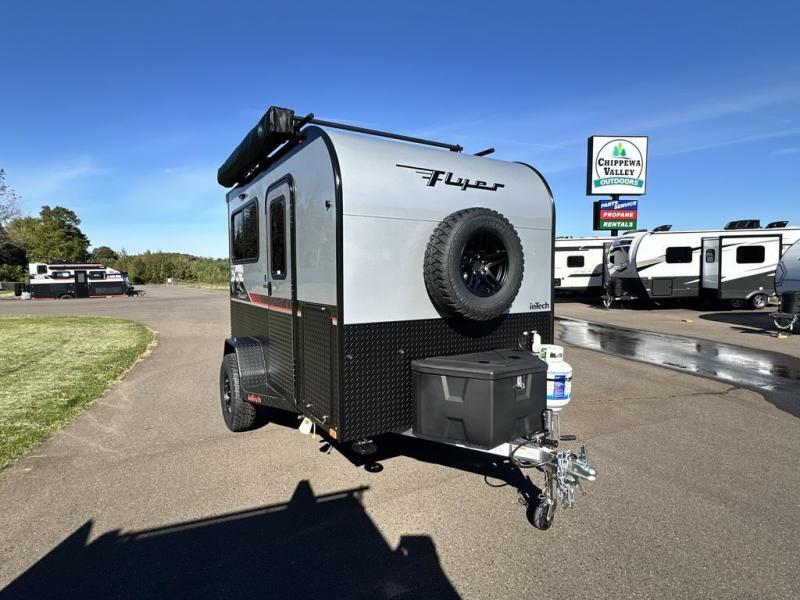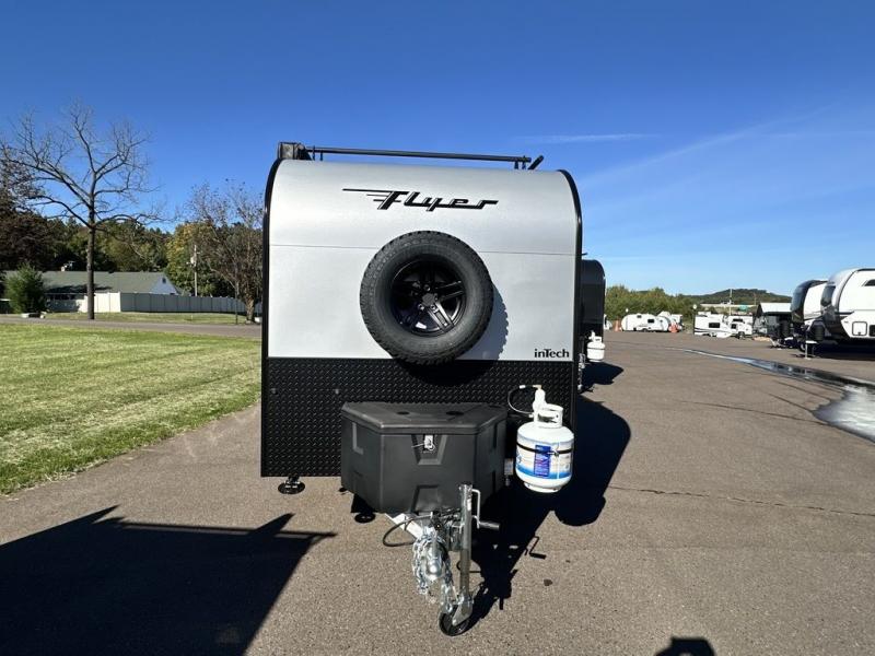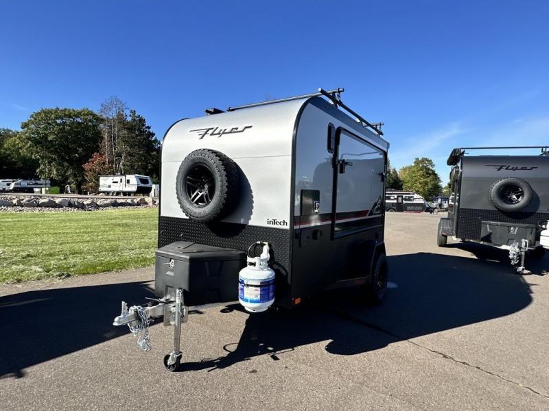 The inTech RV Flyer travel trailers and toy hauler expandables are ready for adventure whenever you are! With the all-aluminum, all-tube cage frame, the Flyer has been built with lightweight and long-lasting materials so that you can enjoy your unit for many, many years. The Flyer has a rugged design so that you can confidently explore new territory and go where traditional RVs cannot. The Flyer has a 2" rear receiver rated for 175 pounds which allows you to bring along your bikes, and the Bluetooth stereo has two speakers you can always have your best music playing. The optional roof rack will allow you to bring along kayaks, and there are more available options depending on the model you choose.