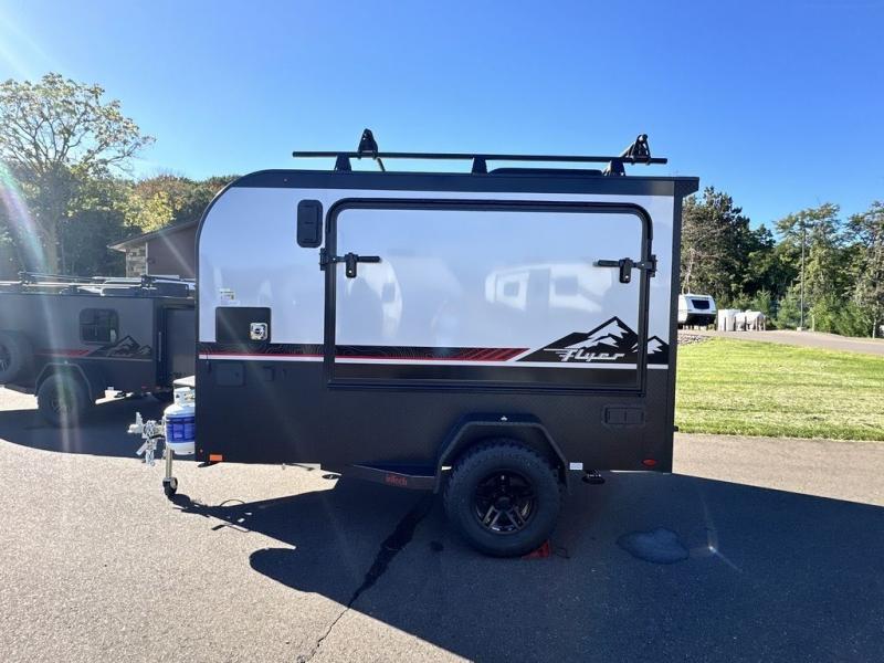 Not only is this Flyer toy hauler built to go where most traditional RVs cannot, but it is also built with a standard rear ramp or optional double rear doors, and six tie-down rings so that it can also serve as the perfect cargo transport too! The interior is spacious with its 46" x 81" tip-out bed, and if you add the second optional tip-out bed, you'll have an amazing amount of space on the inside. This expandable toy hauler is very functional, but you can make it even more enticing by adding optional Adventure Package that comes with an A/C, off-road tires, a roof rack, plus a slide out kitchen! This will allow you to cook wherever you choose to camp. The dry weight for this unit ranges from 1,580-2,110 LBS, the tongue weight ranges from 250-485 LBS, and the net carrying capacity ranges from 880-1,410 LBS.
