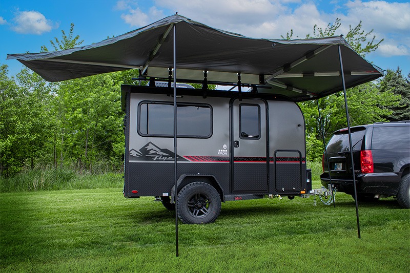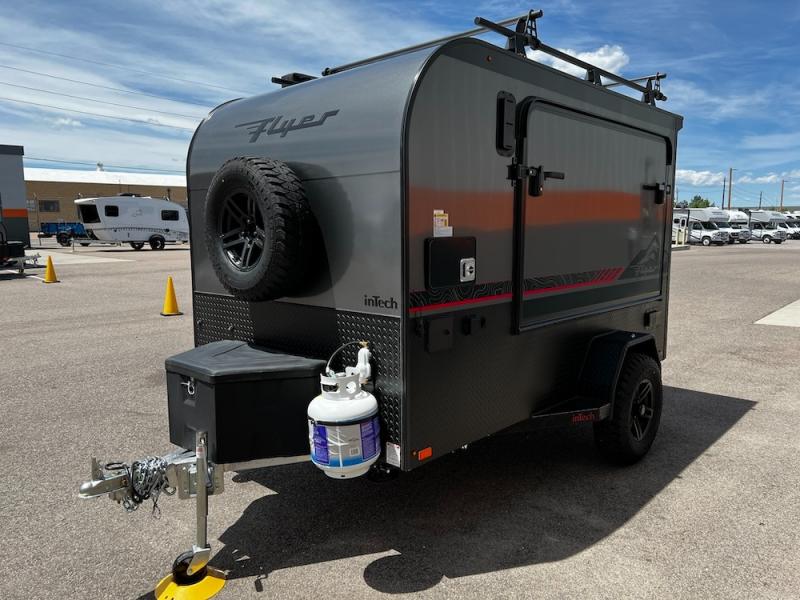 The inTech RV Flyer travel trailers and toy hauler expandables are ready for adventure whenever you are! With the all-aluminum, all-tube cage frame, the Flyer has been built with lightweight and long-lasting materials so that you can enjoy your unit for many, many years. The Flyer has a rugged design so that you can confidently explore new territory and go where traditional RVs cannot. The Flyer has a 2" rear receiver rated for 175 pounds which allows you to bring along your bikes, and the Bluetooth stereo has two speakers you can always have your best music playing. The optional roof rack will allow you to bring along kayaks, and there are more available options depending on the model you choose.