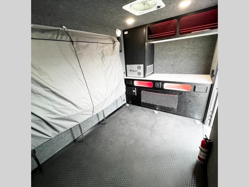 Not only is this Flyer toy hauler built to go where most traditional RVs cannot, but it is also built with a standard rear ramp or optional double rear doors, and six tie-down rings so that it can also serve as the perfect cargo transport too! The interior is spacious with its 46" x 81" tip-out bed, and if you add the second optional tip-out bed, you'll have an amazing amount of space on the inside. This expandable toy hauler is very functional, but you can make it even more enticing by adding optional Adventure Package that comes with an A/C, off-road tires, a roof rack, plus a slide out kitchen! This will allow you to cook wherever you choose to camp. The dry weight for this unit ranges from 1,580-2,110 LBS, the tongue weight ranges from 250-485 LBS, and the net carrying capacity ranges from 880-1,410 LBS.