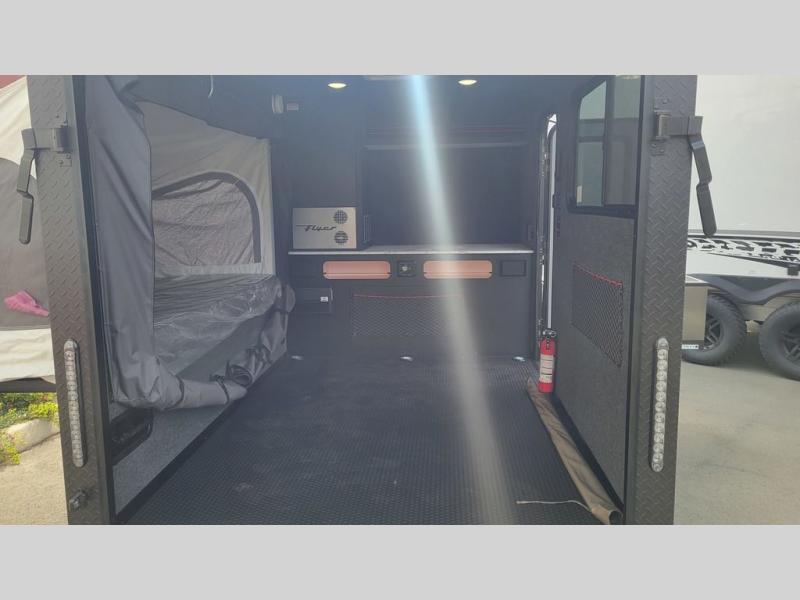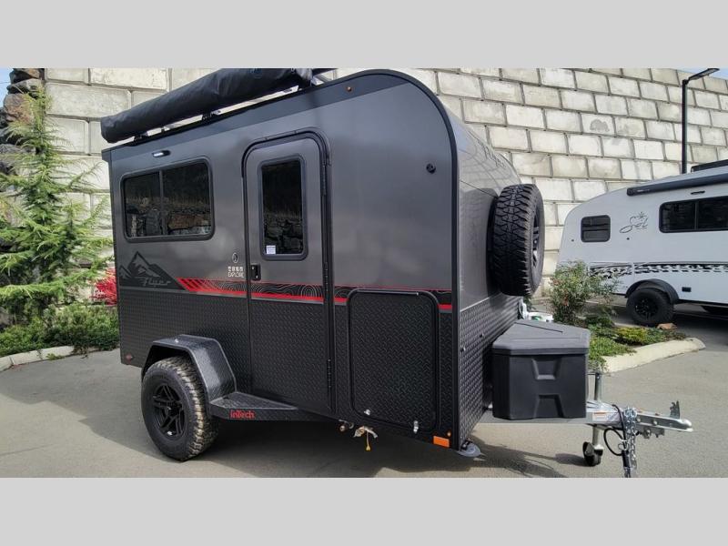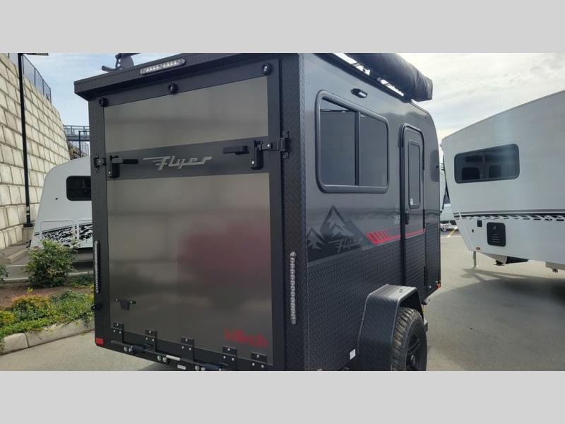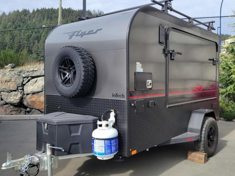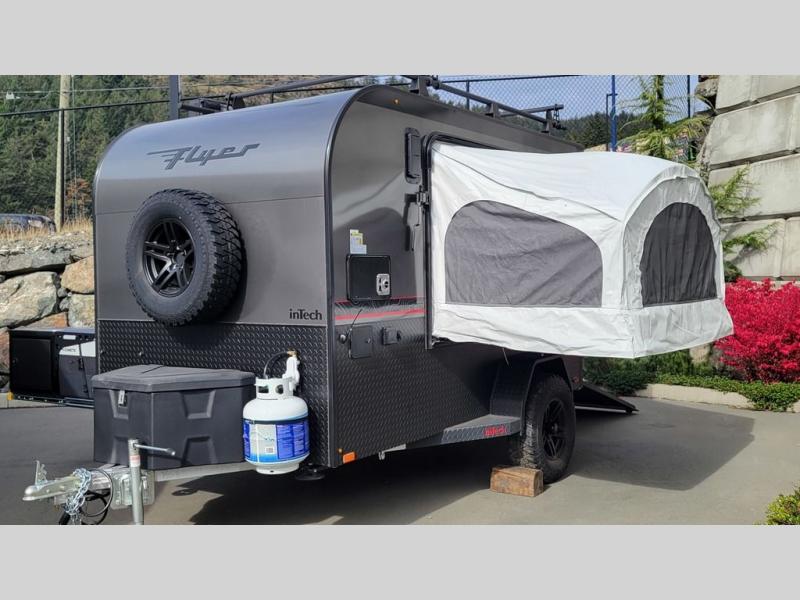 The inTech RV Flyer travel trailers and toy hauler expandables are ready for adventure whenever you are! With the all-aluminum, all-tube cage frame, the Flyer has been built with lightweight and long-lasting materials so that you can enjoy your unit for many, many years. The Flyer has a rugged design so that you can confidently explore new territory and go where traditional RVs cannot. The Flyer has a 2" rear receiver rated for 175 pounds which allows you to bring along your bikes, and the Bluetooth stereo has two speakers you can always have your best music playing. The optional roof rack will allow you to bring along kayaks, and there are more available options depending on the model you choose.
