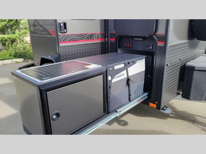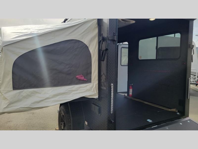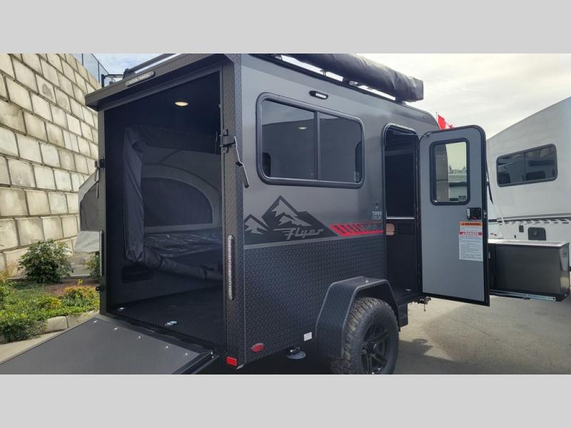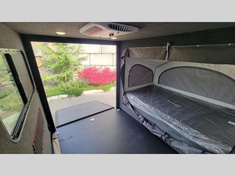 Not only is this Flyer toy hauler built to go where most traditional RVs cannot, but it is also built with a standard rear ramp or optional double rear doors, and six tie-down rings so that it can also serve as the perfect cargo transport too! The interior is spacious with its 46" x 81" tip-out bed, and if you add the second optional tip-out bed, you'll have an amazing amount of space on the inside. This expandable toy hauler is very functional, but you can make it even more enticing by adding optional Adventure Package that comes with an A/C, off-road tires, a roof rack, plus a slide out kitchen! This will allow you to cook wherever you choose to camp. The dry weight for this unit ranges from 1,580-2,110 LBS, the tongue weight ranges from 250-485 LBS, and the net carrying capacity ranges from 880-1,410 LBS.