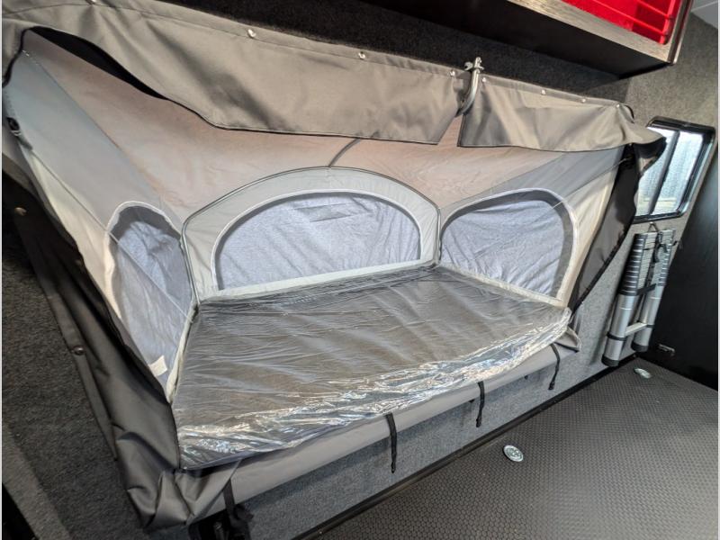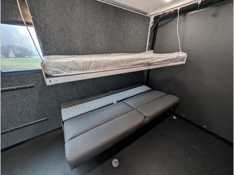 You asked for it and inTech RV delivered with this toy hauler expandable! You will enjoy some of the same features as the Discover model, but will also appreciate a wet bath in the Forge. There is a porcelain toilet, aluminum walls with a sealing exterior door so you don't need a shower curtain, storage space, and even a bath roof vent with an onboard switch! The kitchen includes everything you need to cook meals each day, including a two burner cooktop, a large farmhouse sink, and a spacious 8 cu.ft. 12V refrigerator! The 80" x 160" garage floor space features durable black coin flooring and is large enough to bring in most side-by-sides, plus there are tie-downs to keep your toys secure. For sleeping space, you'll find a tip-out bed and a standard sleeper sofa, and if you have more campers tagging along, you can add the optional drop-down bunk, or even bring your own air mattress! A few more stand-out features you'll love on the Forge are the on-demand LP water heater, the aluminum walk-on roof, tinted windows, and Airline Track sidewall tie-down area! The dry weight for this model ranges from 3,845 lbs. - 4,300 lbs., and the carrying capacity ranges from 2,700 lbs. - 3,155 lbs.