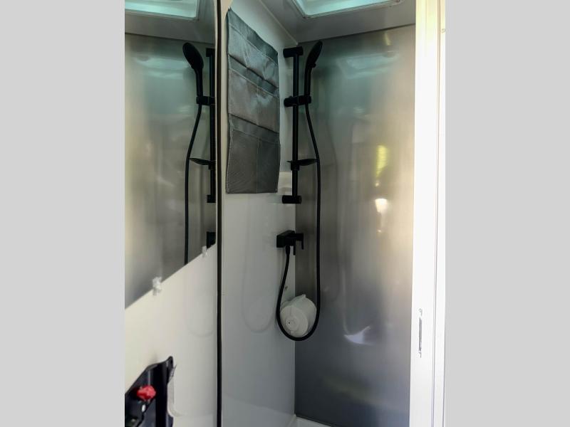 You asked for it and inTech RV delivered with this toy hauler expandable! You will enjoy some of the same features as the Discover model, but will also appreciate a wet bath in the Forge. There is a porcelain toilet, aluminum walls with a sealing exterior door so you don't need a shower curtain, storage space, and even a bath roof vent with an onboard switch! The kitchen includes everything you need to cook meals each day, including a two burner cooktop, a large farmhouse sink, and a spacious 8 cu.ft. 12V refrigerator! The 80" x 160" garage floor space features durable black coin flooring and is large enough to bring in most side-by-sides, plus there are tie-downs to keep your toys secure. For sleeping space, you'll find a tip-out bed and a standard sleeper sofa, and if you have more campers tagging along, you can add the optional drop-down bunk, or even bring your own air mattress! A few more stand-out features you'll love on the Forge are the on-demand LP water heater, the aluminum walk-on roof, tinted windows, and Airline Track sidewall tie-down area! The dry weight for this model ranges from 3,845 lbs. - 4,300 lbs., and the carrying capacity ranges from 2,700 lbs. - 3,155 lbs.