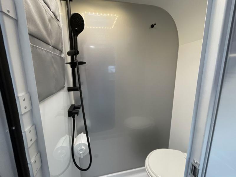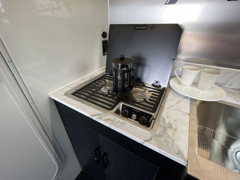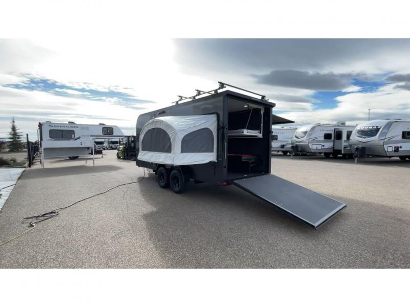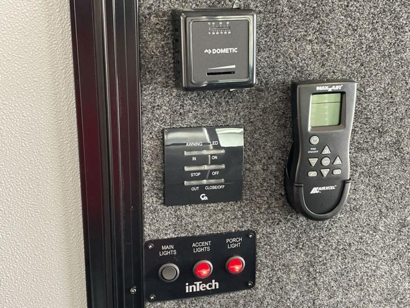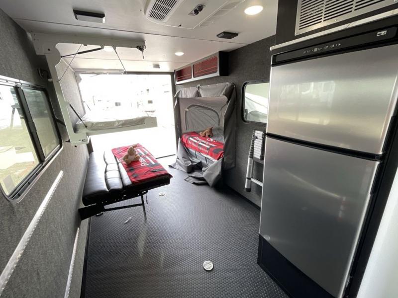 You asked for it and inTech RV delivered with this toy hauler expandable! You will enjoy some of the same features as the Discover model, but will also appreciate a wet bath in the Forge. There is a porcelain toilet, aluminum walls with a sealing exterior door so you don't need a shower curtain, storage space, and even a bath roof vent with an onboard switch! The kitchen includes everything you need to cook meals each day, including a two burner cooktop, a large farmhouse sink, and a spacious 8 cu.ft. 12V refrigerator! The 80" x 160" garage floor space features durable black coin flooring and is large enough to bring in most side-by-sides, plus there are tie-downs to keep your toys secure. For sleeping space, you'll find a tip-out bed and a standard sleeper sofa, and if you have more campers tagging along, you can add the optional drop-down bunk, or even bring your own air mattress! A few more stand-out features you'll love on the Forge are the on-demand LP water heater, the aluminum walk-on roof, tinted windows, and Airline Track sidewall tie-down area! The dry weight for this model ranges from 3,845 lbs. - 4,300 lbs., and the carrying capacity ranges from 2,700 lbs. - 3,155 lbs.
