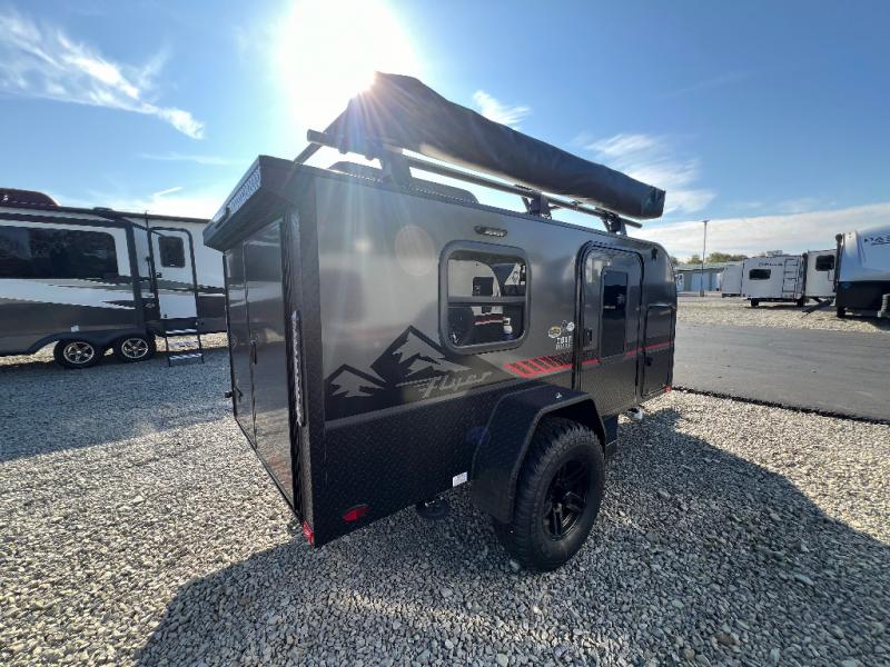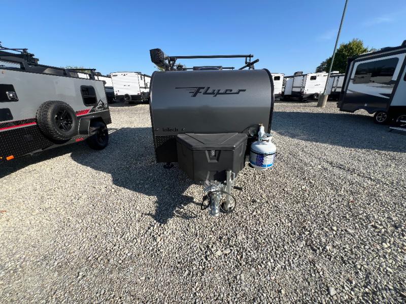 The inTech RV Flyer travel trailers and toy hauler expandables are ready for adventure whenever you are! With the all-aluminum, all-tube cage frame, the Flyer has been built with lightweight and long-lasting materials so that you can enjoy your unit for many, many years. The Flyer has a rugged design so that you can confidently explore new territory and go where traditional RVs cannot. The Flyer has a 2" rear receiver rated for 175 pounds which allows you to bring along your bikes, and the Bluetooth stereo has two speakers you can always have your best music playing. The optional roof rack will allow you to bring along kayaks, and there are more available options depending on the model you choose.