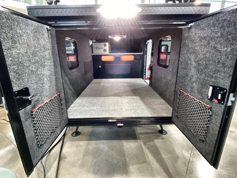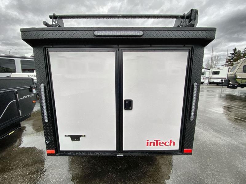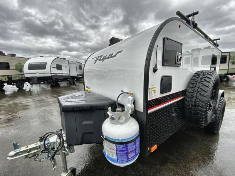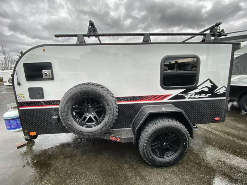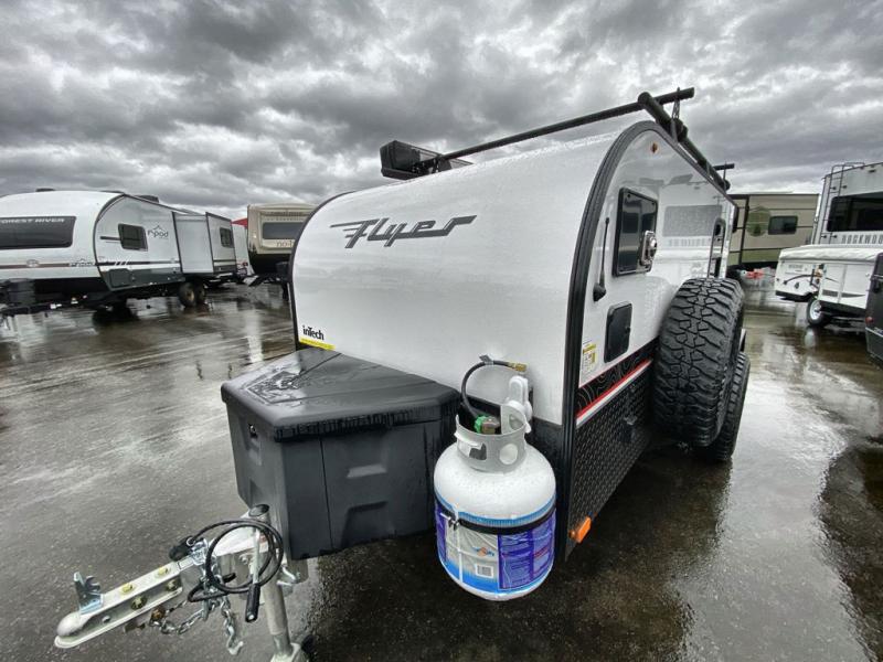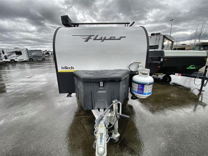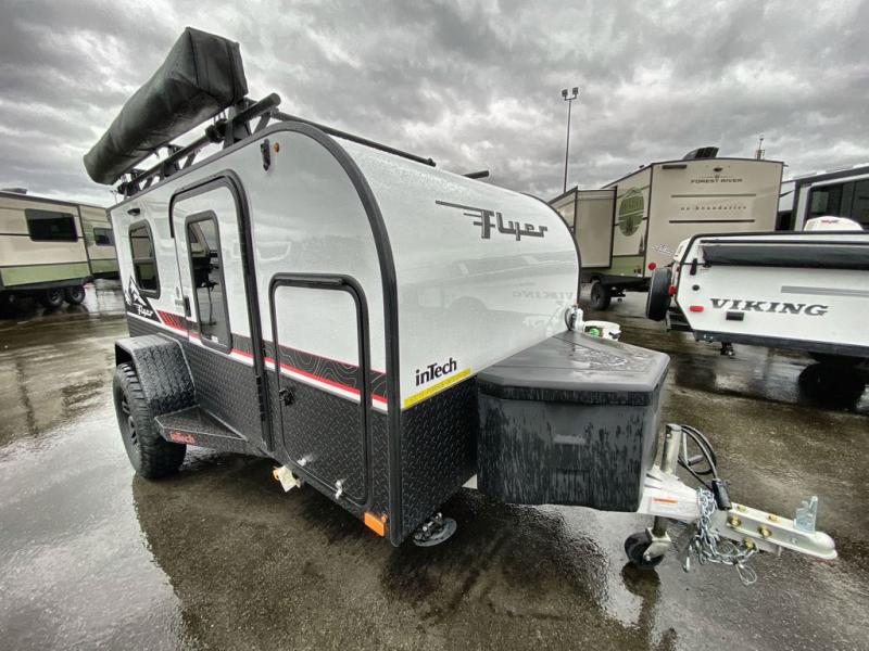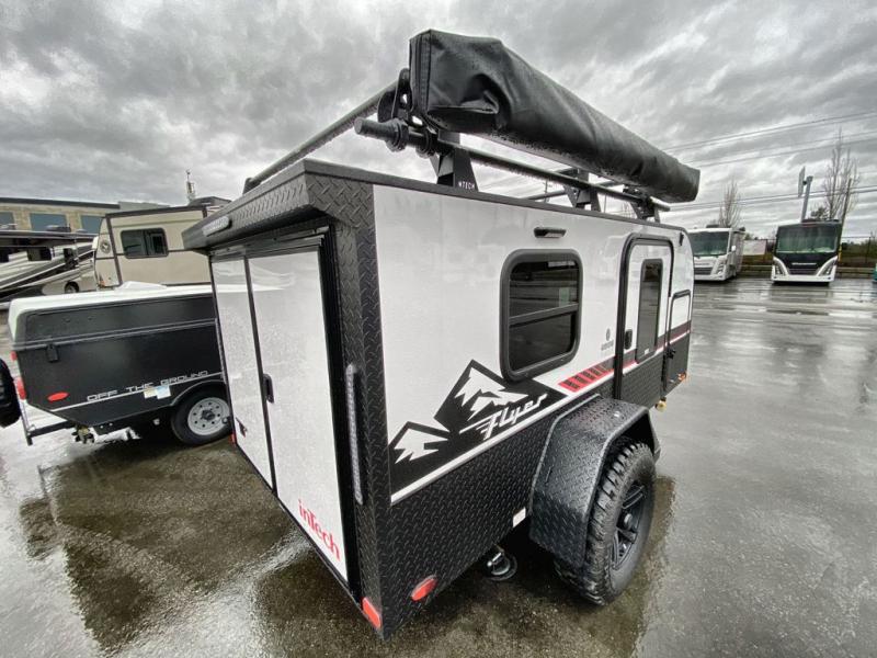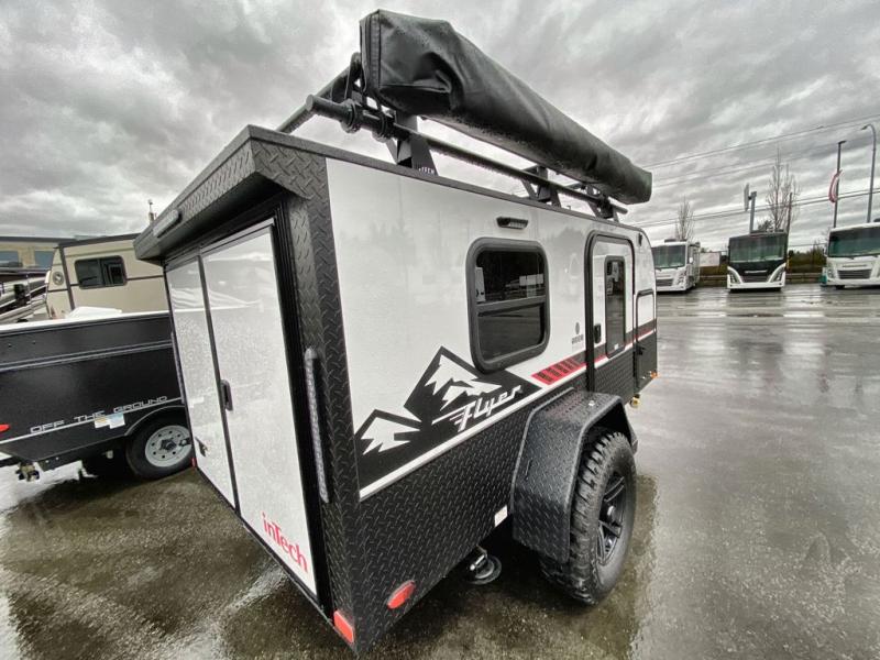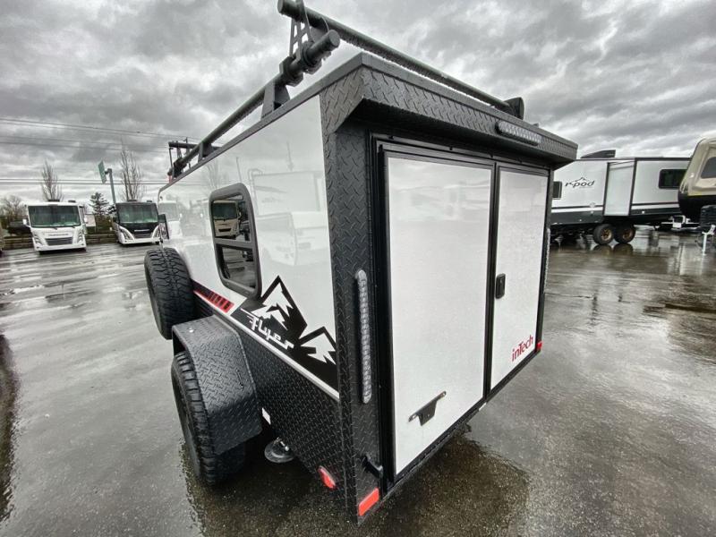 The inTech RV Flyer travel trailers and toy hauler expandables are ready for adventure whenever you are! With the all-aluminum, all-tube cage frame, the Flyer has been built with lightweight and long-lasting materials so that you can enjoy your unit for many, many years. The Flyer has a rugged design so that you can confidently explore new territory and go where traditional RVs cannot. The Flyer has a 2" rear receiver rated for 175 pounds which allows you to bring along your bikes, and the Bluetooth stereo has two speakers you can always have your best music playing. The optional roof rack will allow you to bring along kayaks, and there are more available options depending on the model you choose.