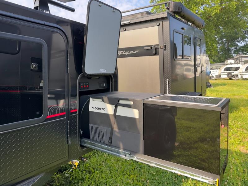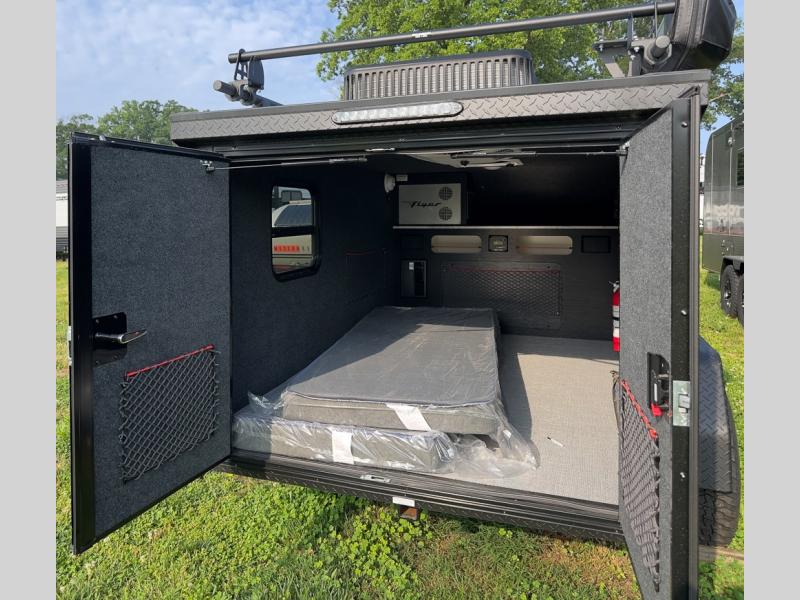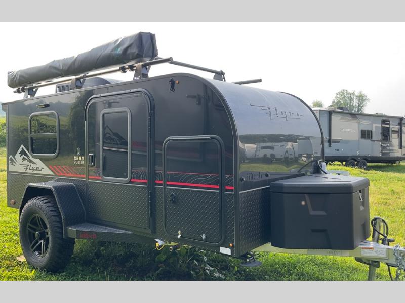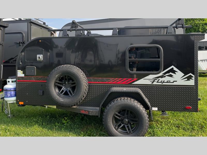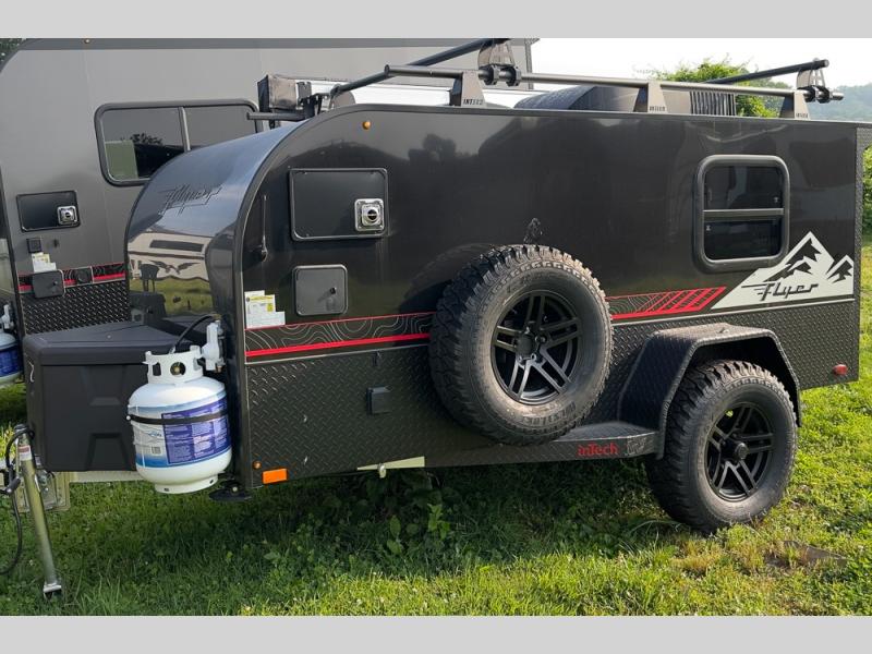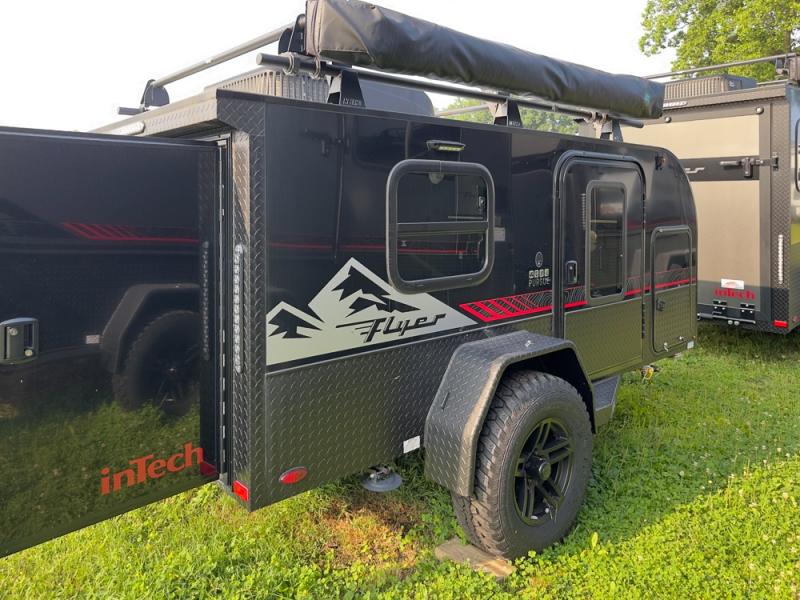 The inTech RV Flyer travel trailers and toy hauler expandables are ready for adventure whenever you are! With the all-aluminum, all-tube cage frame, the Flyer has been built with lightweight and long-lasting materials so that you can enjoy your unit for many, many years. The Flyer has a rugged design so that you can confidently explore new territory and go where traditional RVs cannot. The Flyer has a 2" rear receiver rated for 175 pounds which allows you to bring along your bikes, and the Bluetooth stereo has two speakers you can always have your best music playing. The optional roof rack will allow you to bring along kayaks, and there are more available options depending on the model you choose.