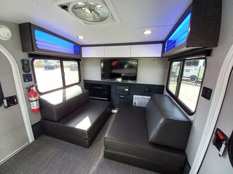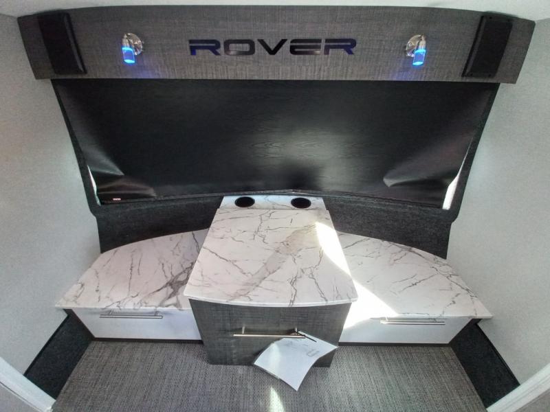 Each Luna teardrop trailer by inTech RV is constructed with an all-aluminum, all-tube, cage frame, a one piece fiberglass roof, plus bubble foil insulation to provide a durable unit made to last. You will always stay cool with the 8,000 BTU A/C and the MaxxAir vent fan. Each model includes an outside kitchen with a 40qt. 12V cooler to store your cold food, a stainless steel cooktop, plus plenty of storage space for all your necessities. Inside, you'll enjoy the Infinity Woven flooring, two tinted windows with shades and screens, a Bluetooth stereo with four speakers and a 32" TV, plus USB ports and outlets to keep your phone and tablet charged. You'll appreciate the 1,775 lbs. to 1,850 lbs. dry weights for easy towing and the Rover Package that includes an aluminum tube rear bumper, rugged decals, integrated side steps, and an adjustable roof rack for luggage or kayaks!