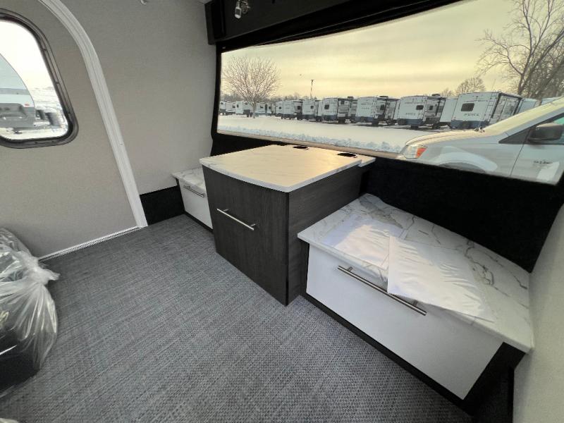 When your adventure is all about the outdoors, but you would rather sleep on a comfortable queen-size bed instead of an air mattress, this Luna teardrop trailer is precisely what you need! The 260-270 lbs. tongue weight and the 550-625 lbs. carrying capacity allow you to hitch up and head out without a worry. With the full kitchen that has been included in the hatch of this model, you have the ability to prepare and enjoy a delicious meal outdoors that isn't hot dogs or s'mores, and the kitchen storage allows you to keep all of your favorite snacks and spices handy while you cook. Every morning you will love waking up to the beautiful and picturesque views of the lake or mountains coming through the large tempered glass panoramic windshield, and when you find yourself camping out in the middle of summer, you will enjoy staying indoors a little bit longer because of the 8,000 BTU air conditioner that will cool you down. The optional straight awning creates a bit more outdoor living space protected from the elements!