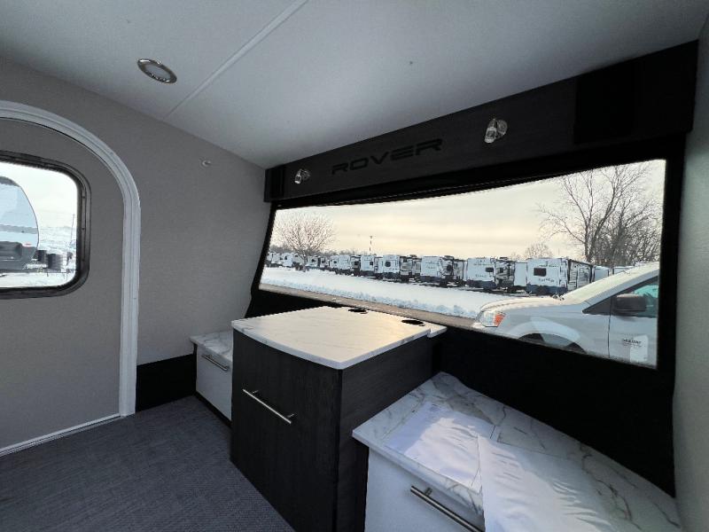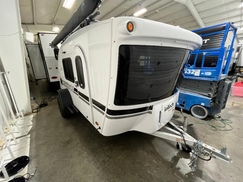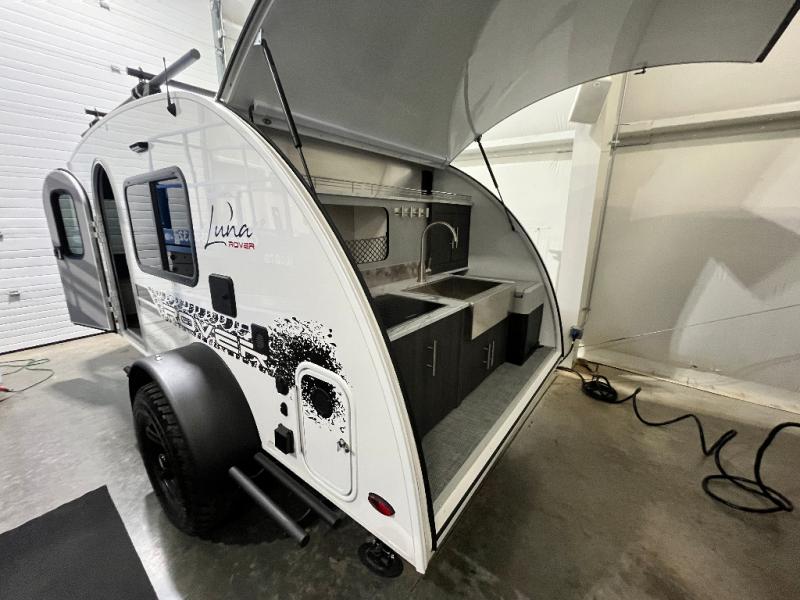 Each Luna teardrop trailer by inTech RV is constructed with an all-aluminum, all-tube, cage frame, a one piece fiberglass roof, plus bubble foil insulation to provide a durable unit made to last. You will always stay cool with the 8,000 BTU A/C and the MaxxAir vent fan. Each model includes an outside kitchen with a 40qt. 12V cooler to store your cold food, a stainless steel cooktop, plus plenty of storage space for all your necessities. Inside, you'll enjoy the Infinity Woven flooring, two tinted windows with shades and screens, a Bluetooth stereo with four speakers and a 32" TV, plus USB ports and outlets to keep your phone and tablet charged. You'll appreciate the 1,775 lbs. to 1,850 lbs. dry weights for easy towing and the Rover Package that includes an aluminum tube rear bumper, rugged decals, integrated side steps, and an adjustable roof rack for luggage or kayaks!