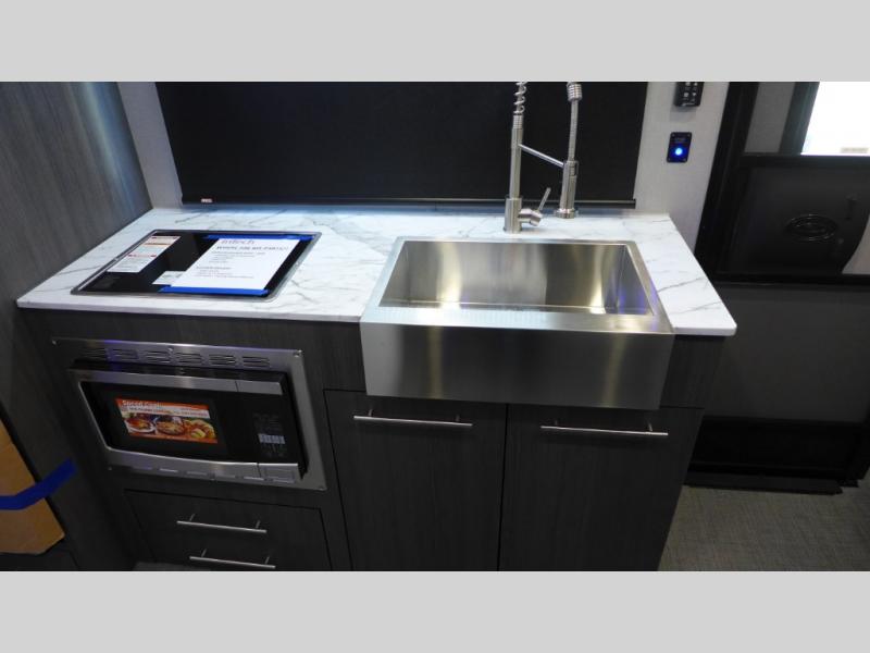The O-R-V travel trailers and toy hauler by inTech RV allow you to experience adventure off the beaten path with its rugged exterior and lightweight construction provided by the all-aluminum fully welded cage frame. The power tongue jack will make setting up camp a breeze, plus there is a fold-away double entry step and exterior lighting for added convenience. Inside, you'll find a large farmhouse style sink, a MaxxAir vent for ventilation, plus infinity woven flooring. There is a Bluetooth stereo with four speakers and a 32" Smart TV included with each model, plus USB and 110V outlets to keep your electronics charged and ready to go. Further customize your O-V-R by adding the optional power awning or the optional Off-Grid Package with 400 watts of solar power, 20 amp hours of lithium batteries, and a 2,000 watt inverter!