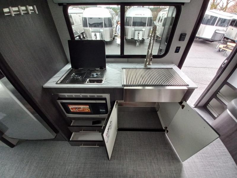 Plan to see it all in this rugged travel trailer that can sleep four with the front queen and the L-shaped dinette. And you can choose to add the optional drop-down bunk or optional twin beds in place of the queen bed up front! The wet bath allows you to easily freshen up each day, and the chef of your group will love this O-V-R kitchen. Here, you'll find a two burner stainless steel cooktop, a convection microwave, plus a 10 cu. ft. 12V refrigerator for perishables. This model also includes plenty of storage spaces, including four exterior storage compartments, five cubbies, plus a pantry cabinet just for snacks. You may want to add the optional slide out exterior kitchen and optional exterior refrigerator for the cook who loves making breakfast outdoors, or add the optional 3.6kW LP generator that will pair great with the optional Off-Grid Package!