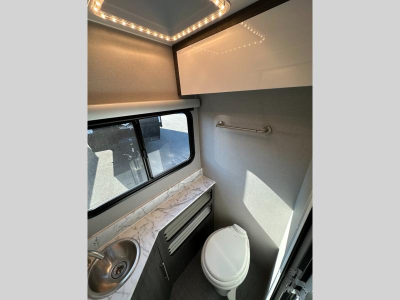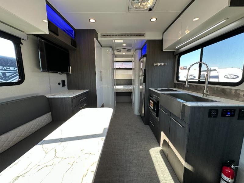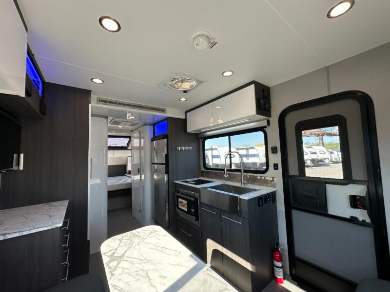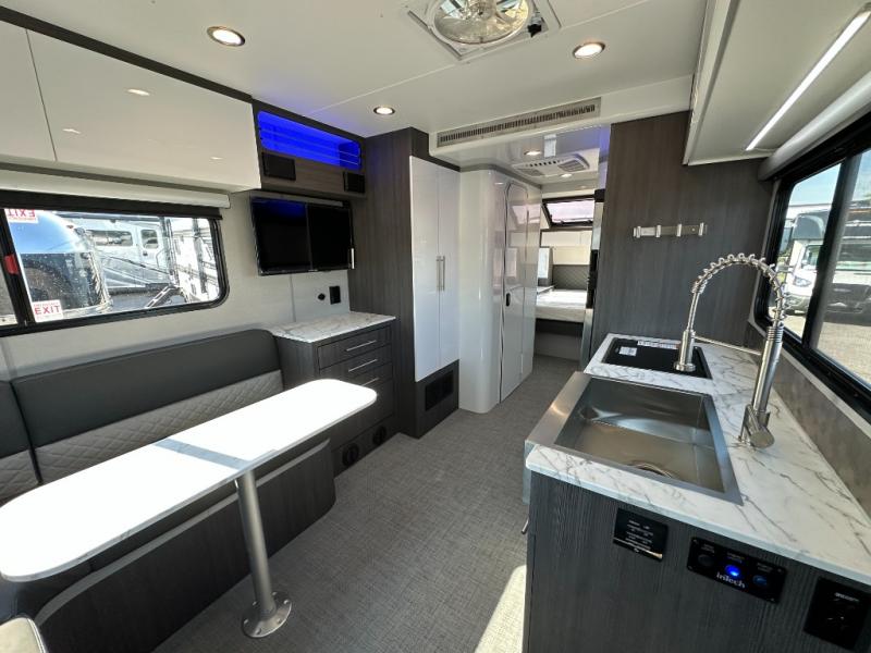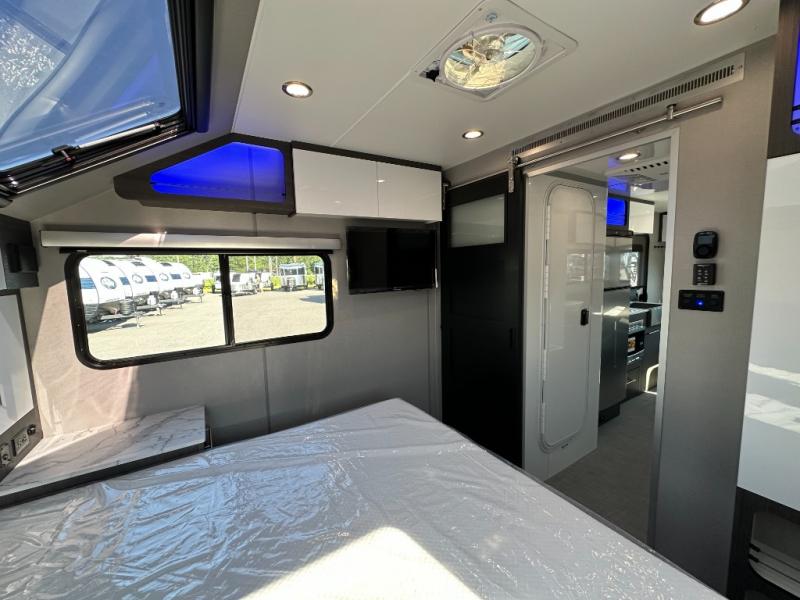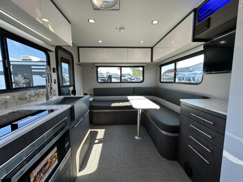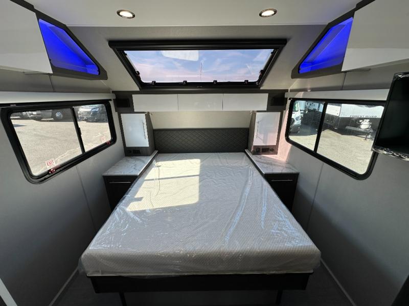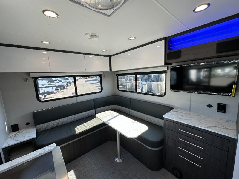 The O-R-V travel trailers and toy hauler by inTech RV allow you to experience adventure off the beaten path with its rugged exterior and lightweight construction provided by the all-aluminum fully welded cage frame. The power tongue jack will make setting up camp a breeze, plus there is a fold-away double entry step and exterior lighting for added convenience. Inside, you'll find a large farmhouse style sink, a MaxxAir vent for ventilation, plus infinity woven flooring. There is a Bluetooth stereo with four speakers and a 32" Smart TV included with each model, plus USB and 110V outlets to keep your electronics charged and ready to go. Further customize your O-V-R by adding the optional power awning or the optional Off-Grid Package with 400 watts of solar power, 20 amp hours of lithium batteries, and a 2,000 watt inverter!
