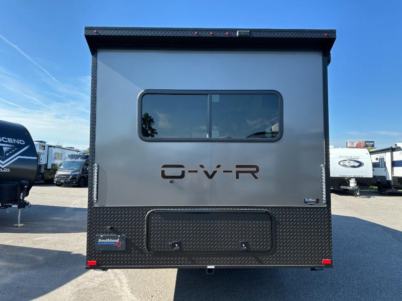 Navigate tough roads in this O-V-R travel trailer! You will love having your own walk-around queen bed in the front bedroom, or you can choose the optional twin beds in place of the queen bed. There is a private porcelain toilet and a round sink across the hall from the shower, allowing two people to freshen up at once, and you'll appreciate the base cabinet with under-sink storage for your toiletries. Once you've worked up an appetite from hiking, head to the kitchen to prepare lunch on the stainless steel two burner cooktop and grab a cold drink from the 10 cu. ft. 12V refrigerator. You can dine at the L-shaped dinette, or head outdoors to relax in your camp chair. Add the optional slide out exterior kitchen or the optional 3.6kW LP generator for even more convenience!