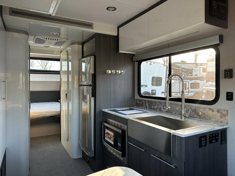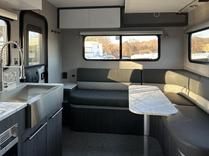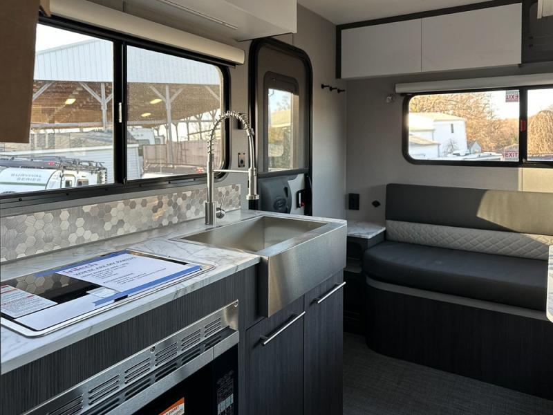The O-R-V travel trailers and toy hauler by inTech RV allow you to experience adventure off the beaten path with its rugged exterior and lightweight construction provided by the all-aluminum fully welded cage frame. The power tongue jack will make setting up camp a breeze, plus there is a fold-away double entry step and exterior lighting for added convenience. Inside, you'll find a large farmhouse style sink, a MaxxAir vent for ventilation, plus infinity woven flooring. There is a Bluetooth stereo with four speakers and a 32" Smart TV included with each model, plus USB and 110V outlets to keep your electronics charged and ready to go. Further customize your O-V-R by adding the optional power awning or the optional Off-Grid Package with 400 watts of solar power, 20 amp hours of lithium batteries, and a 2,000 watt inverter!