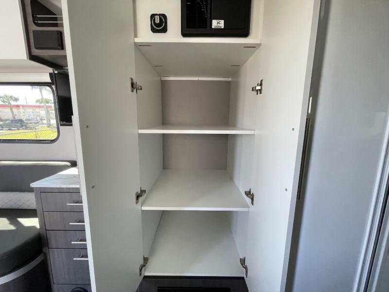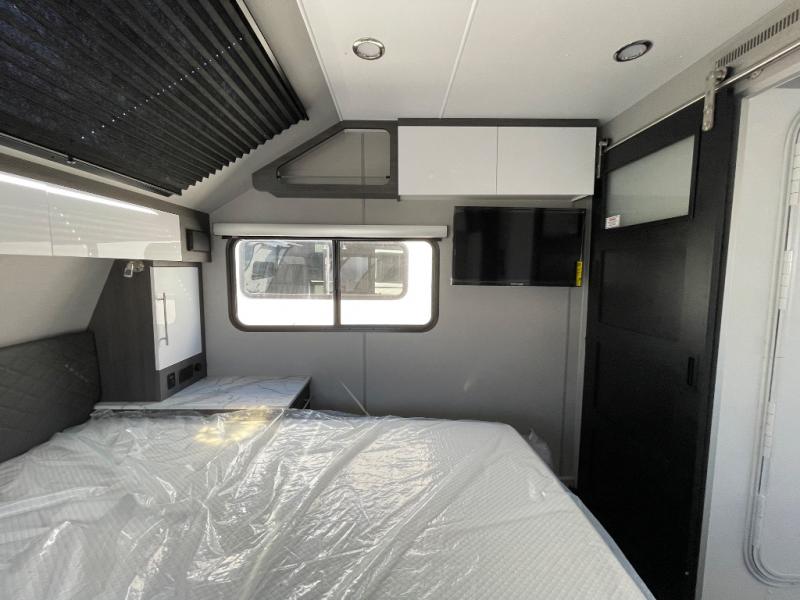 The O-R-V travel trailers and toy hauler by inTech RV allow you to experience adventure off the beaten path with its rugged exterior and lightweight construction provided by the all-aluminum fully welded cage frame. The power tongue jack will make setting up camp a breeze, plus there is a fold-away double entry step and exterior lighting for added convenience. Inside, you'll find a large farmhouse style sink, a MaxxAir vent for ventilation, plus infinity woven flooring. There is a Bluetooth stereo with four speakers and a 32" Smart TV included with each model, plus USB and 110V outlets to keep your electronics charged and ready to go. Further customize your O-V-R by adding the optional power awning or the optional Off-Grid Package with 400 watts of solar power, 20 amp hours of lithium batteries, and a 2,000 watt inverter!
