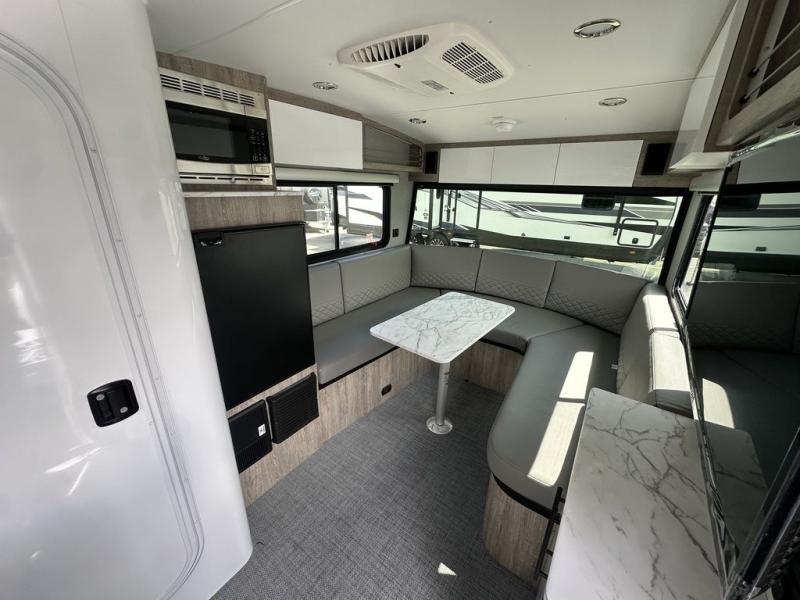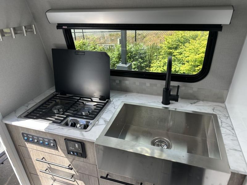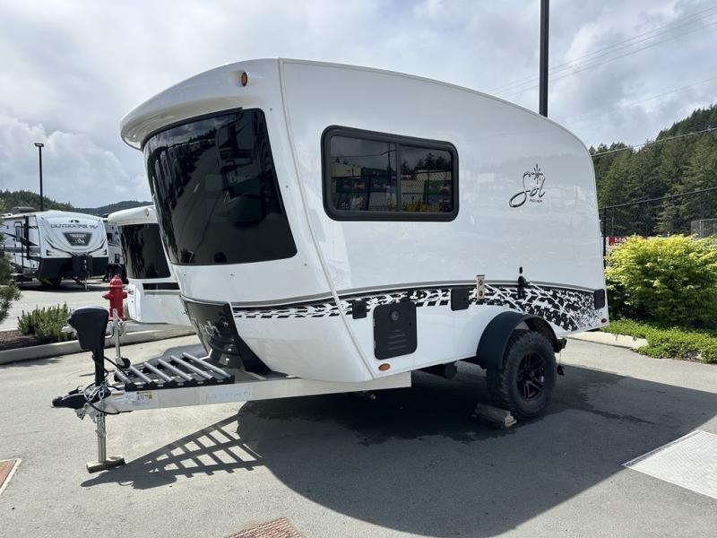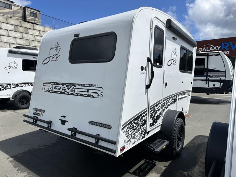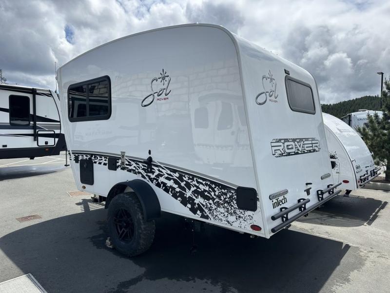 With any Sol travel trailer by inTech RV you will find strong, durable construction consisting of lightweight aluminum that is easier to tow and resists rust, water, and dents. The Tilt-Forward Design creates more space inside so you can stretch out, and the panoramic windshield gives a great view of the mountains, ocean, or forest! The elegant interior features tinted windows with shades, Infinity woven flooring, and a stainless steel cooktop and microwave. You will stay comfortable year around since these models include a 15K BTU A/C and a 16K BTU furnace. The optional Rover Package can also be added that features rugged decals, off-road tires with a 3" lift, two different color choices to choose from, plus more!