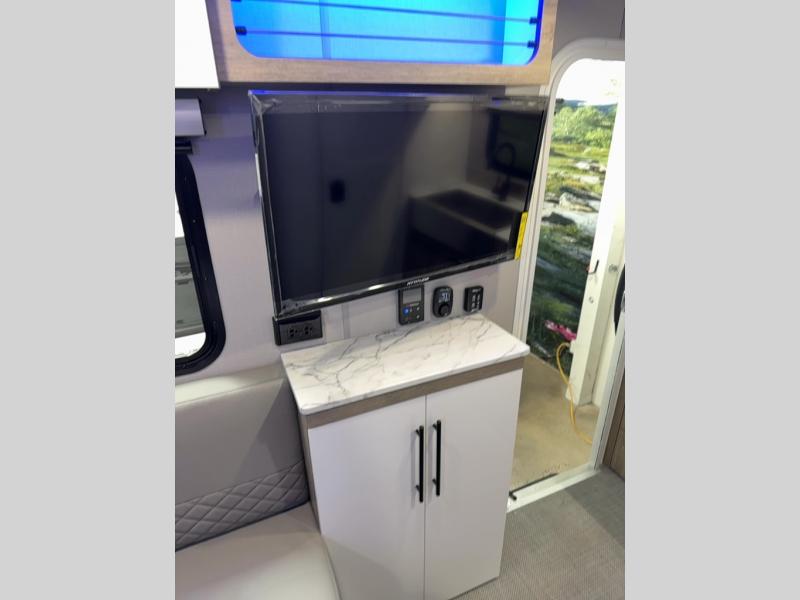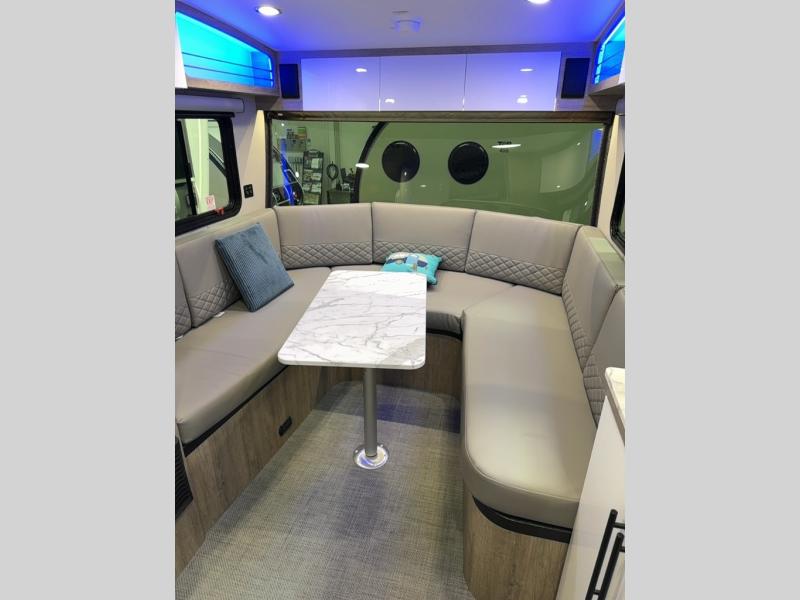 With any Sol travel trailer by inTech RV you will find strong, durable construction consisting of lightweight aluminum that is easier to tow and resists rust, water, and dents. The Tilt-Forward Design creates more space inside so you can stretch out, and the panoramic windshield gives a great view of the mountains, ocean, or forest! The elegant interior features tinted windows with shades, Infinity woven flooring, and a stainless steel cooktop and microwave. You will stay comfortable year around since these models include a 15K BTU A/C and a 16K BTU furnace.