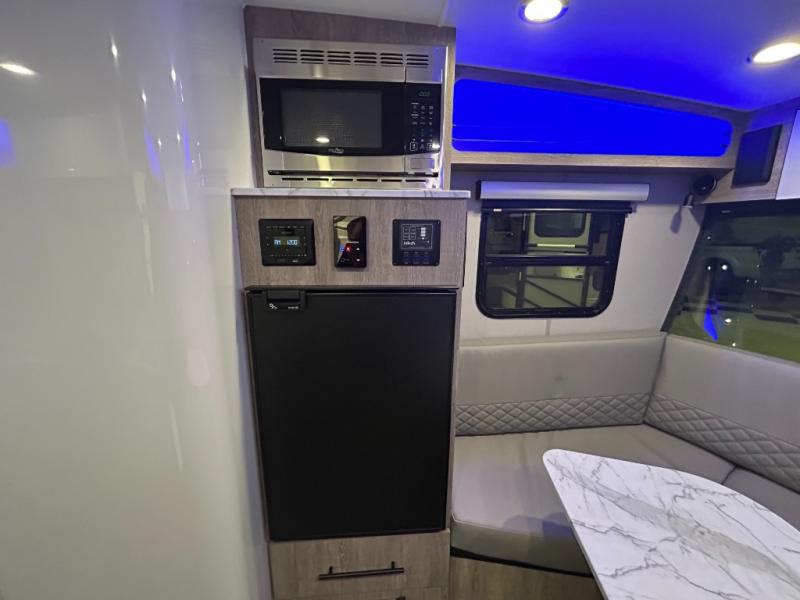 With any Sol travel trailer by inTech RV you will find strong, durable construction consisting of lightweight aluminum that is easier to tow and resists rust, water, and dents. The Tilt-Forward Design creates more space inside so you can stretch out, and the panoramic windshield gives a great view of the mountains, ocean, or forest! The elegant interior features tinted windows with shades, Infinity woven flooring, and a stainless steel cooktop and microwave. You will stay comfortable year around since these models include a 15K BTU A/C and a 16K BTU furnace. The optional Rover Package can also be added that features rugged decals, off-road tires with a 3" lift, two different color choices to choose from, plus more!