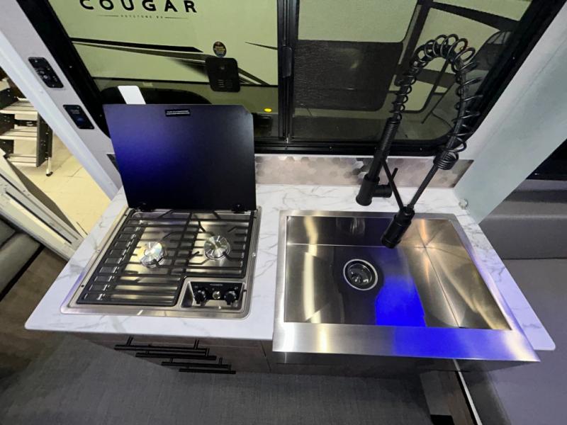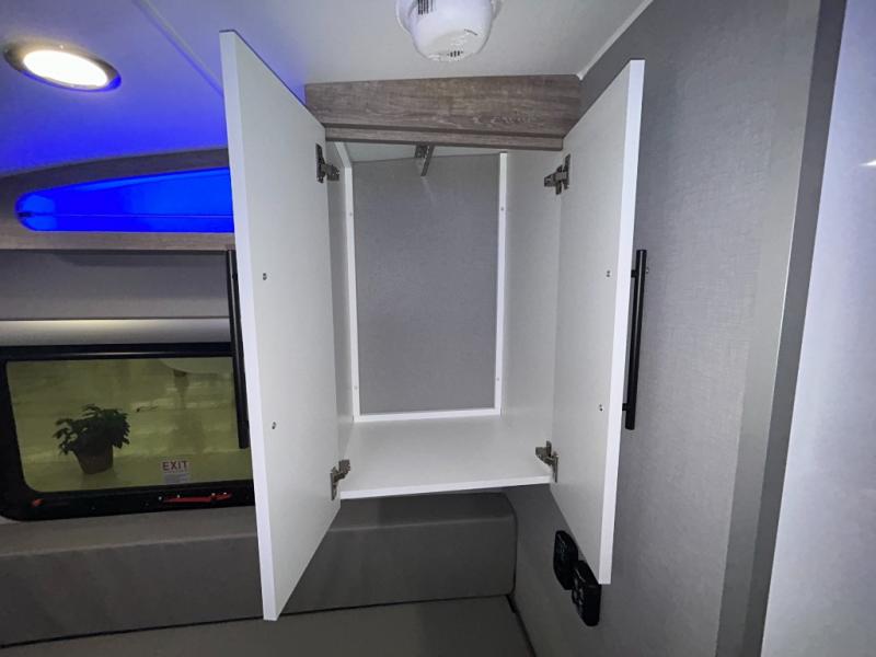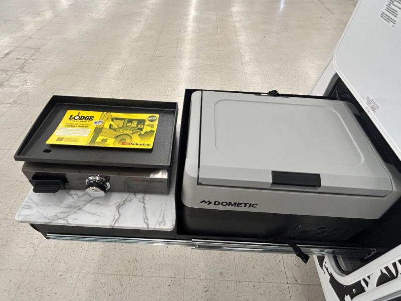 This travel trailer is ready to hit the great outdoors whenever you are! You and your loved one will have a front convertible U-shaped dinette to enjoy meals at and sleep on at night. And the rear twin beds include a filler if you want to convert them into one king-size bed In the morning. You can also prepare eggs and bacon on the two burner cooktop before heading out for the day. If you've chosen the optional 10' awning, you may not wander off too far from your trailer. This model also includes a wet bath with a porcelain toilet and a roof vent to eliminate any unwanted steam. This model also has a dry weight that ranges from 3,590-3,980 lbs., a tongue weight between 540-575 lbs., and a carrying capacity between 820-1210 lbs.