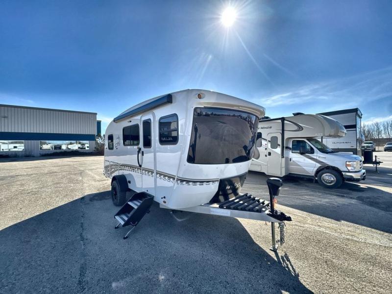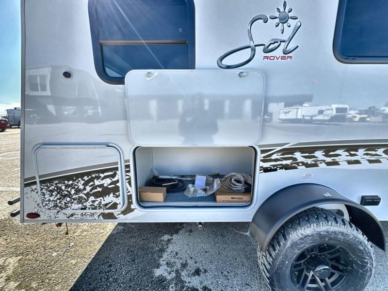 With any Sol travel trailer by inTech RV you will find strong, durable construction consisting of lightweight aluminum that is easier to tow and resists rust, water, and dents. The Tilt-Forward Design creates more space inside so you can stretch out, and the panoramic windshield gives a great view of the mountains, ocean, or forest! The elegant interior features tinted windows with shades, Infinity woven flooring, and a stainless steel cooktop and microwave. You will stay comfortable year around since these models include a 15K BTU A/C and a 16K BTU furnace. The optional Rover Package can also be added that features rugged decals, off-road tires with a 3" lift, two different color choices to choose from, plus more!