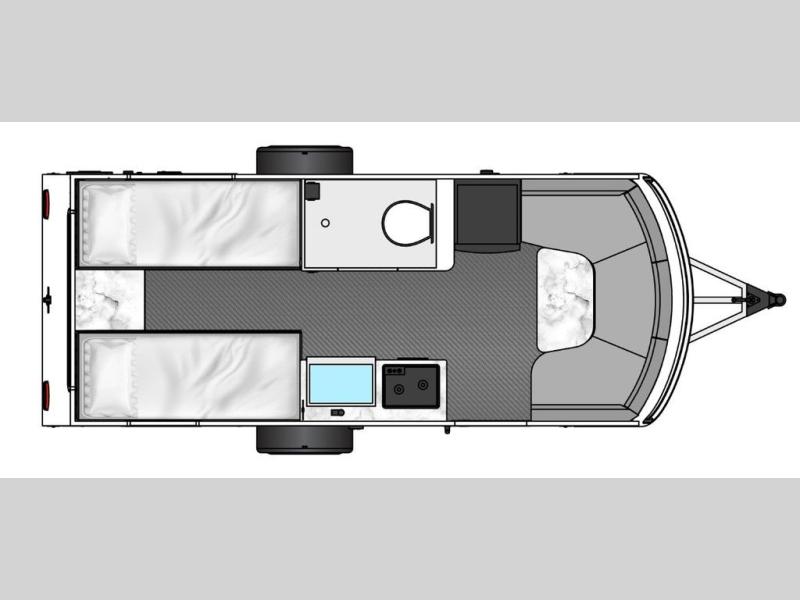 This travel trailer is ready to hit the great outdoors whenever you are! You and your loved one will have a front convertible U-shaped dinette to enjoy meals at and sleep on at night. And the rear twin beds include a filler if you want to convert them into one king-size bed In the morning. You can also prepare eggs and bacon on the two burner cooktop before heading out for the day. If you've chosen the optional 10' awning, you may not wander off too far from your trailer. This model also includes a wet bath with a porcelain toilet and a roof vent to eliminate any unwanted steam. This model has a dry weight that ranges from 3,540-3,970 lbs., a tongue weight between 540-575 lbs., and a carrying capacity between 820-1210 lbs.
