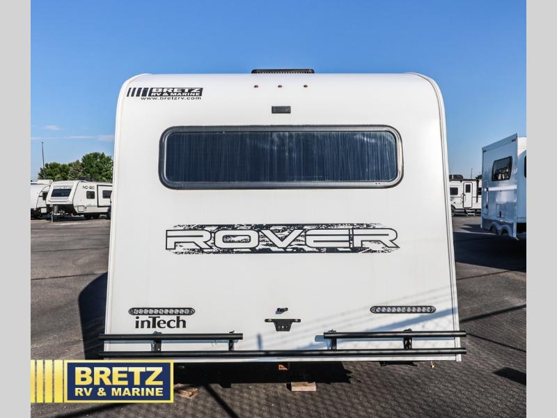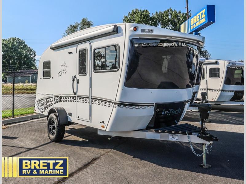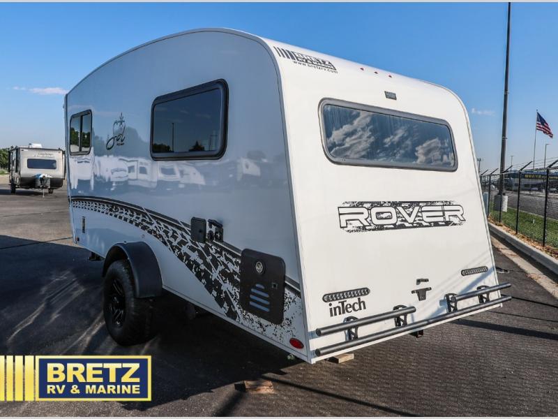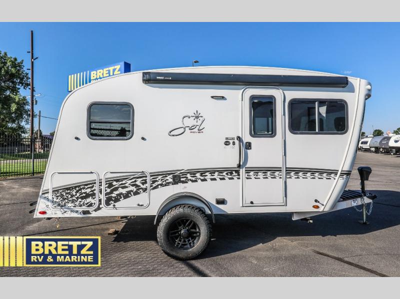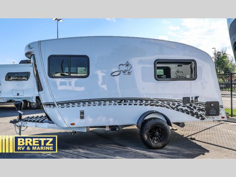 With any Sol travel trailer by inTech RV you will find strong, durable construction consisting of lightweight aluminum that is easier to tow and resists rust, water, and dents. The Tilt-Forward Design creates more space inside so you can stretch out, and the panoramic windshield gives a great view of the mountains, ocean, or forest! The elegant interior features tinted windows with shades, Infinity woven flooring, and a stainless steel cooktop and microwave. You will stay comfortable year around since these models include a 15K BTU A/C and a 16K BTU furnace. The optional Rover Package can also be added that features rugged decals, off-road tires with a 3" lift, two different color choices to choose from, plus more!
