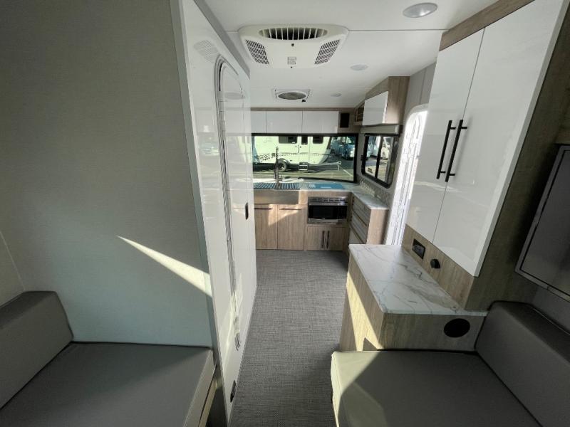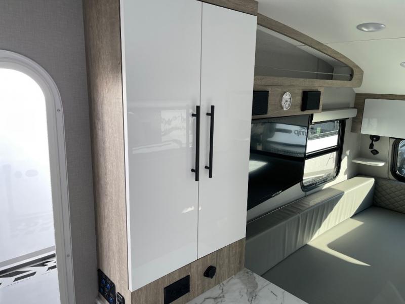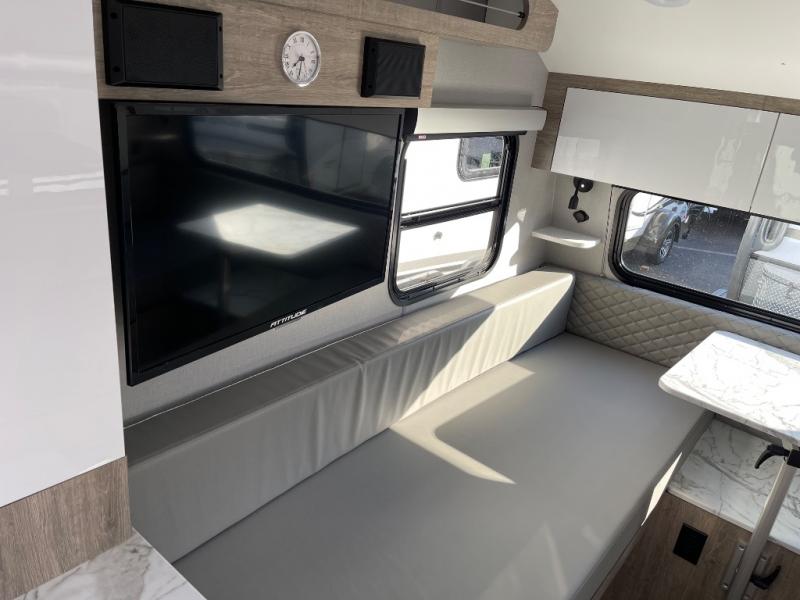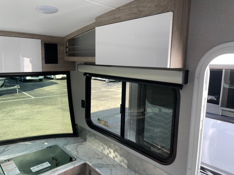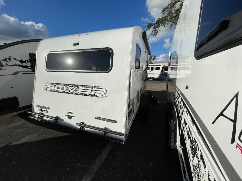 With any Sol travel trailer by inTech RV you will find strong, durable construction consisting of lightweight aluminum that is easier to tow and resists rust, water, and dents. The Tilt-Forward Design creates more space inside so you can stretch out, and the panoramic windshield gives a great view of the mountains, ocean, or forest! The elegant interior features tinted windows with shades, Infinity woven flooring, and a stainless steel cooktop and microwave. You will stay comfortable year around since these models include a 15K BTU A/C and a 16K BTU furnace. The optional Rover Package can also be added that features rugged decals, off-road tires with a 3" lift, two different color choices to choose from, plus more!