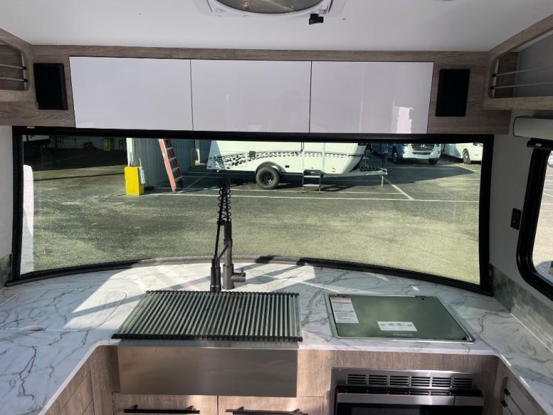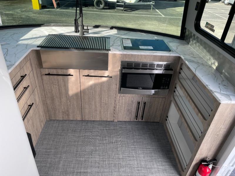 This Eclipse travel trailer will be the perfect companion on all your excursions. The large farmhouse style sink in the front kitchen provides plenty of space to clean up after dinner, and the stainless steel microwave will be perfect for popcorn and game night. The rear twin beds can be used to dine or sleep on, and you'll have a filler cushion if you want to convert them into a king-size bed! You won't have to worry about being bored on those rainy days since this model includes a 28" TV and a Bluetooth stereo with four speakers! This model also has a dry weight that ranges from 3,240-3,660 lbs. lbs., a tongue weight between