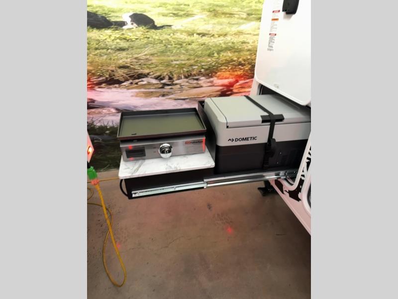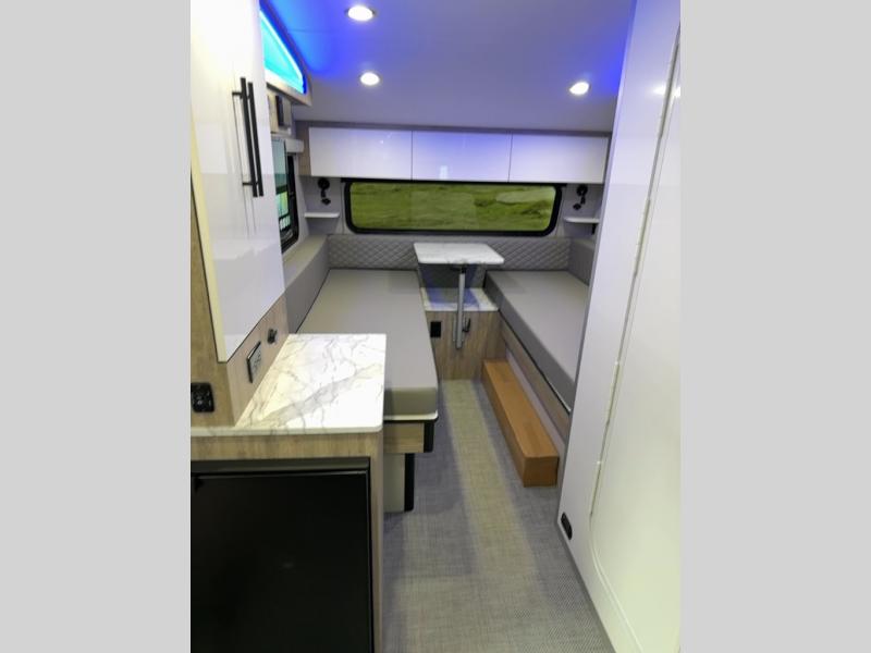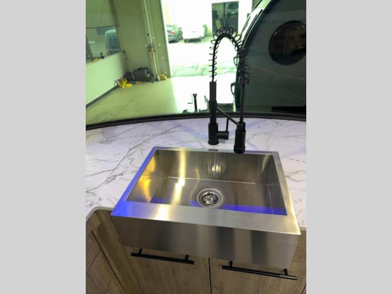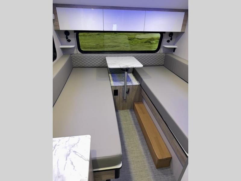 With any Sol travel trailer by inTech RV you will find strong, durable construction consisting of lightweight aluminum that is easier to tow and resists rust, water, and dents. The Tilt-Forward Design creates more space inside so you can stretch out, and the panoramic windshield gives a great view of the mountains, ocean, or forest! The elegant interior features tinted windows with shades, Infinity woven flooring, and a stainless steel cooktop and microwave. You will stay comfortable year around since these models include a 15K BTU A/C and a 16K BTU furnace.