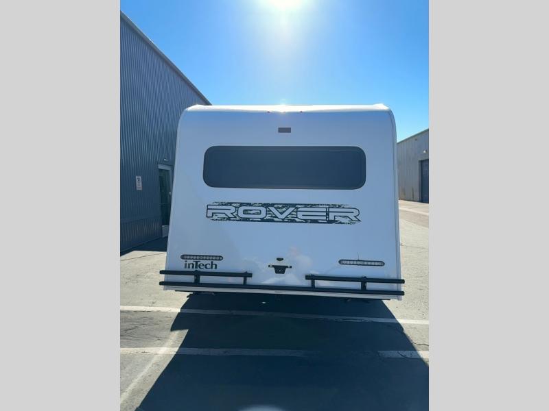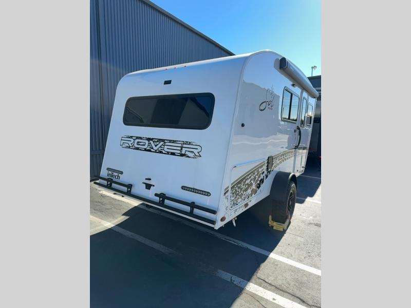 With any Sol travel trailer by inTech RV you will find strong, durable construction consisting of lightweight aluminum that is easier to tow and resists rust, water, and dents. The Tilt-Forward Design creates more space inside so you can stretch out, and the panoramic windshield gives a great view of the mountains, ocean, or forest! The elegant interior features tinted windows with shades, Infinity woven flooring, and a stainless steel cooktop and microwave. You will stay comfortable year around since these models include a 15K BTU A/C and a 16K BTU furnace. The optional Rover Package can also be added that features rugged decals, off-road tires with a 3" lift, two different color choices to choose from, plus more!
