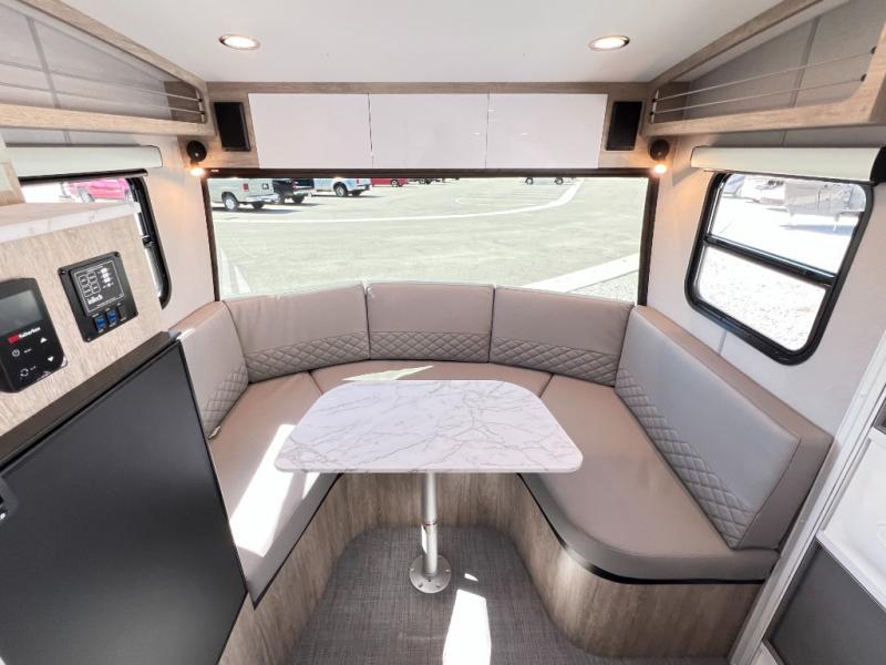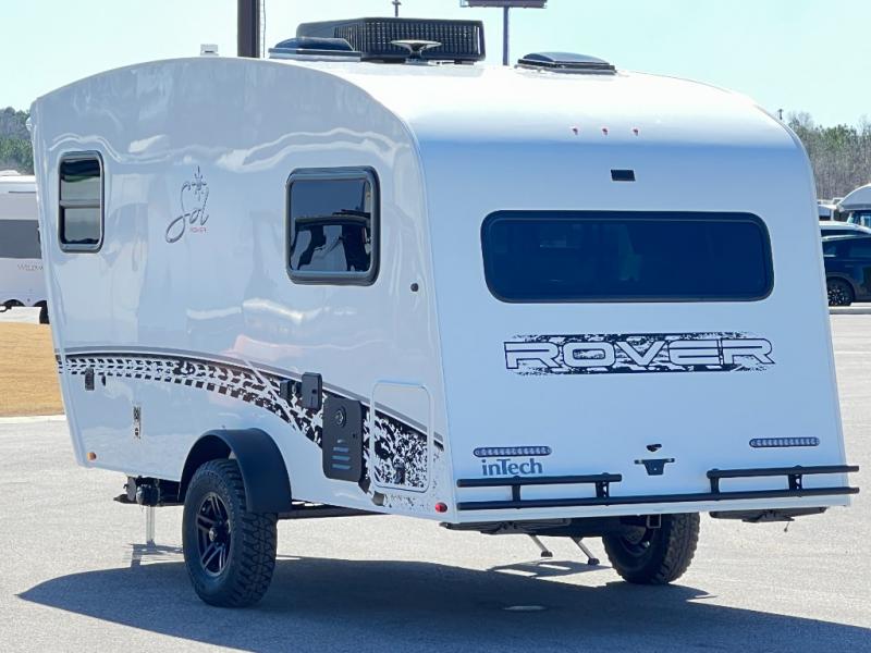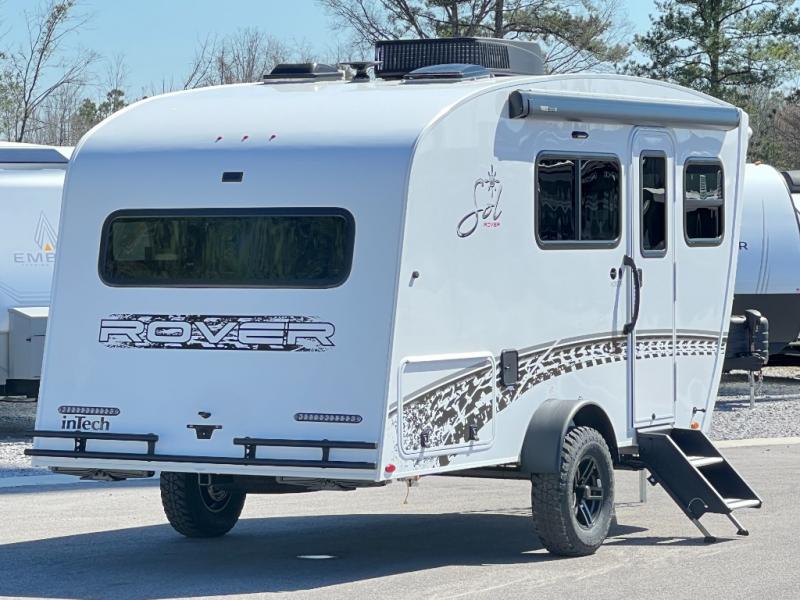 With any Sol travel trailer by inTech RV you will find strong, durable construction consisting of lightweight aluminum that is easier to tow and resists rust, water, and dents. The Tilt-Forward Design creates more space inside so you can stretch out, and the panoramic windshield gives a great view of the mountains, ocean, or forest! The elegant interior features tinted windows with shades, Infinity woven flooring, and a stainless steel cooktop and microwave. You will stay comfortable year around since these models include a 15K BTU A/C and a 16K BTU furnace. The optional Rover Package can also be added that features rugged decals, off-road tires with a 3" lift, two different color choices to choose from, plus more!