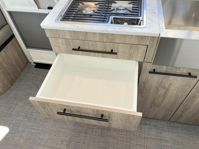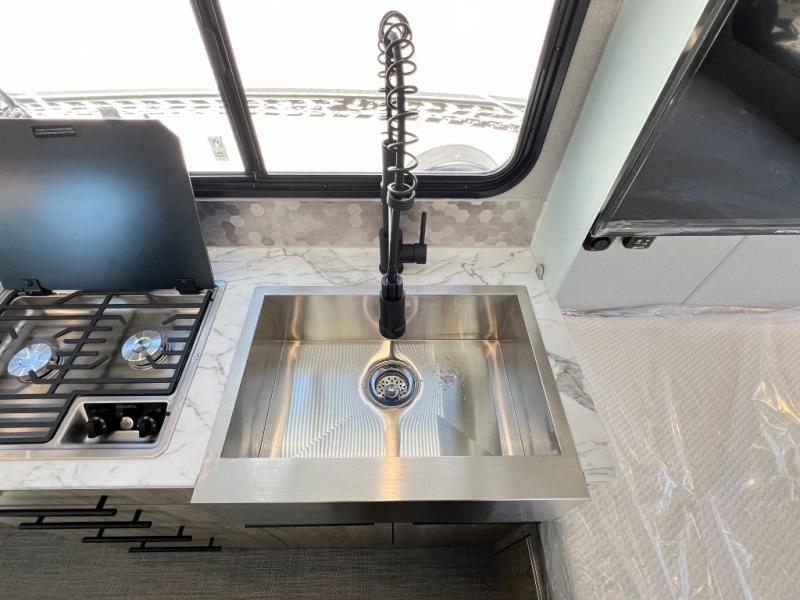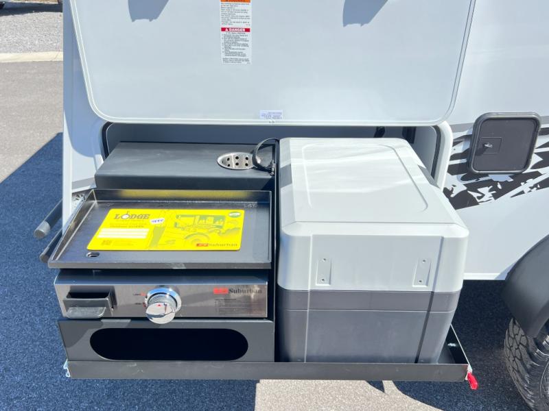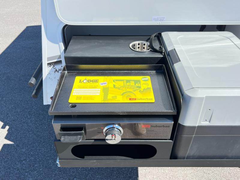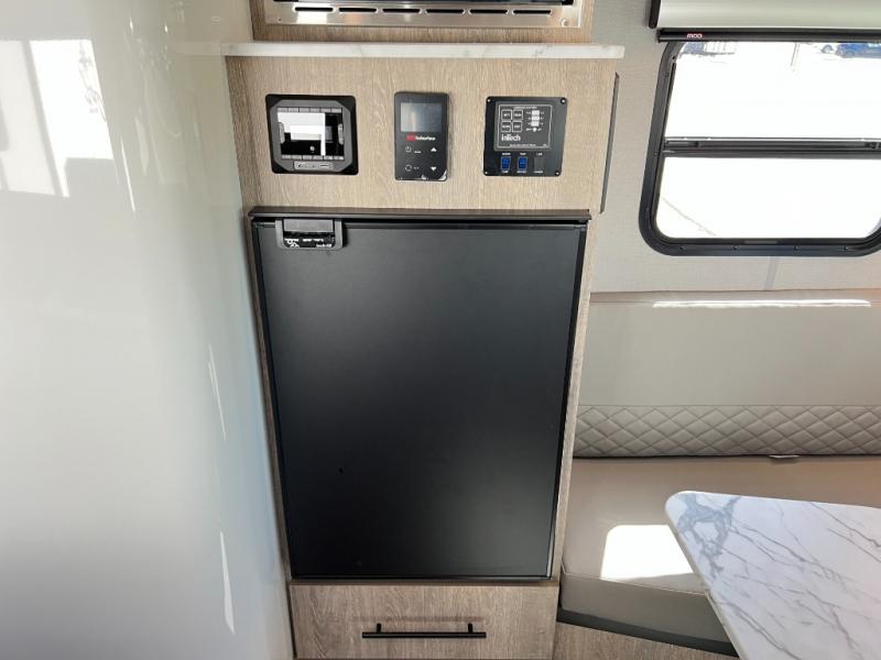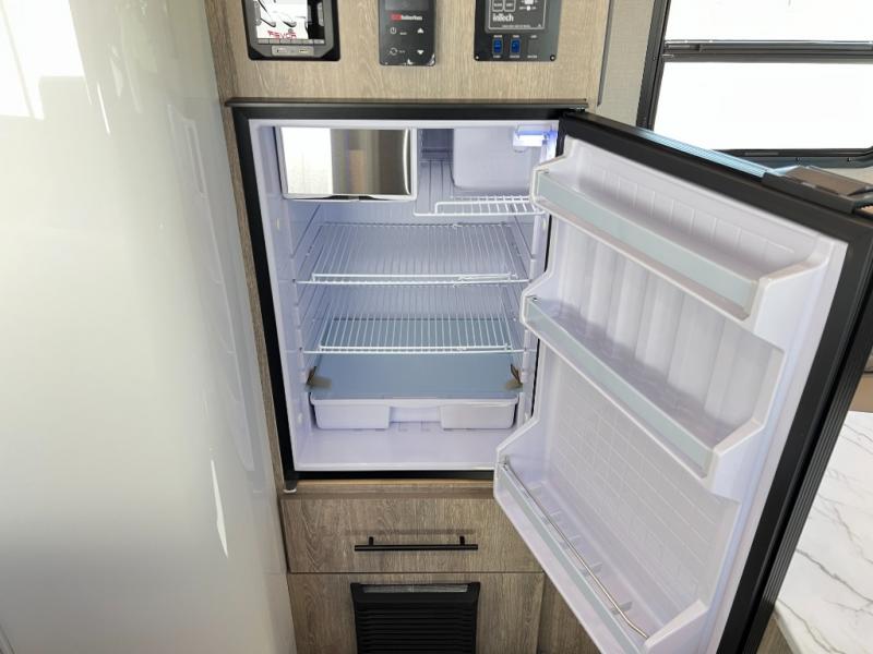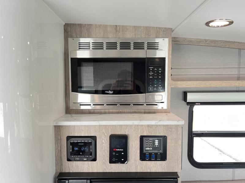 You will love the added space in this travel trailer that can sleep four people each night. There is a queen-size bed in the back, plus a convertible U-shaped dinette up front for the kids or your camping friends. The kitchen includes a two burner stainless steel cooktop, a stainless steel microwave, and a 4.5 12V compressor refrigerator for your perishables. You can also add the optional 10' power awning outside for shade as you visit with loved ones! This model has a dry weight that ranges from 3,230-3,372 lbs., a tongue weight between 465-495, and a carrying capacity between 525-610 lbs.