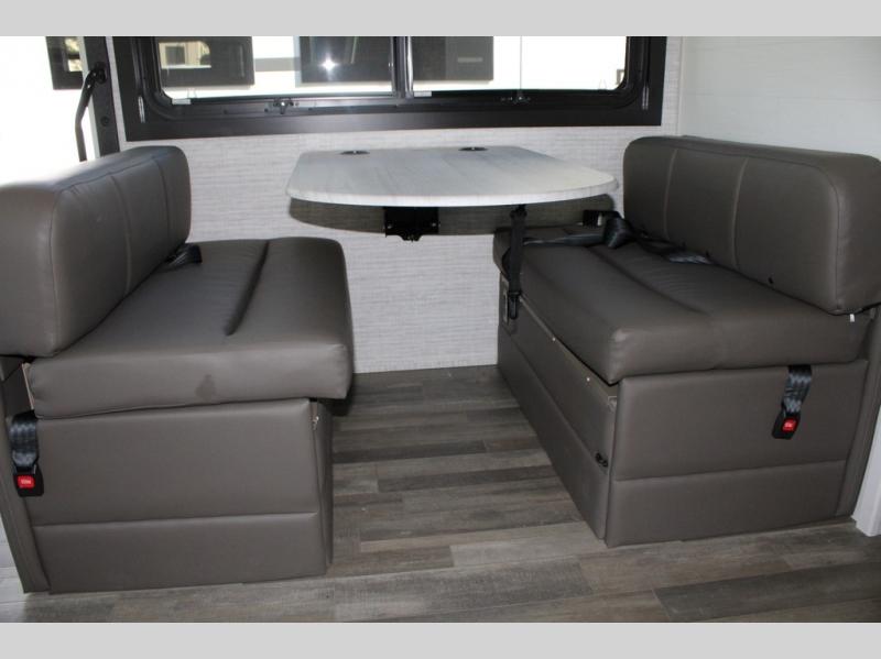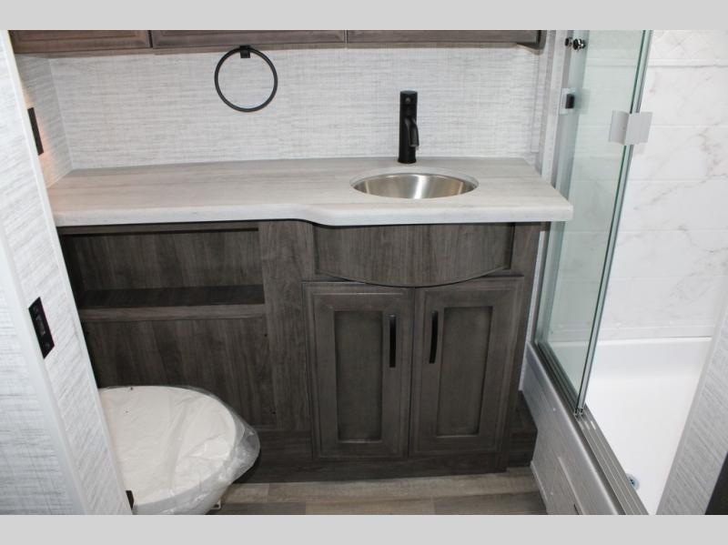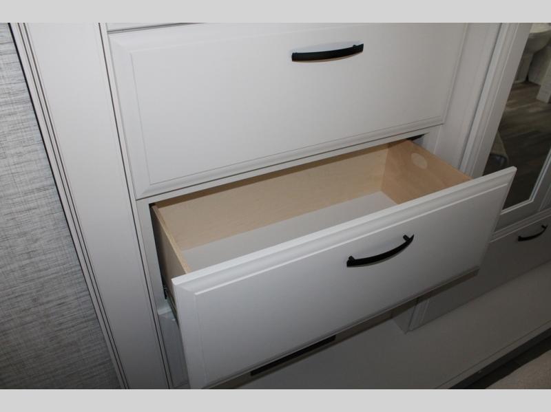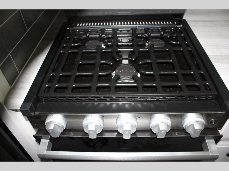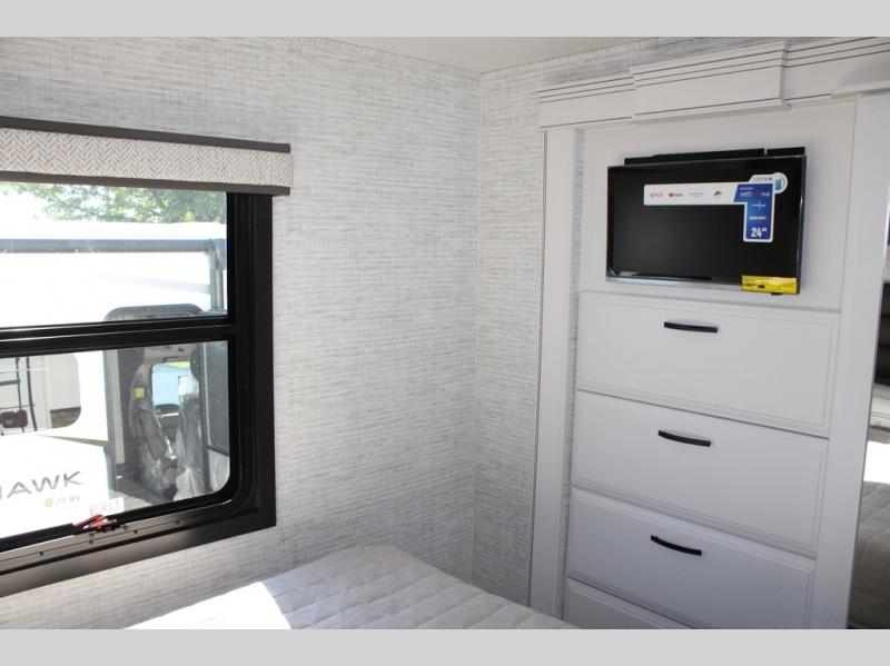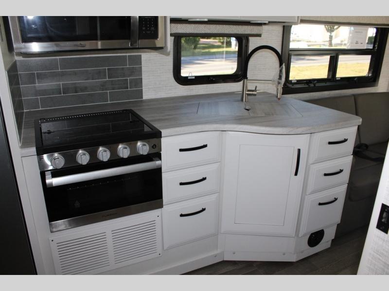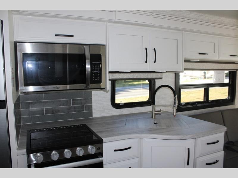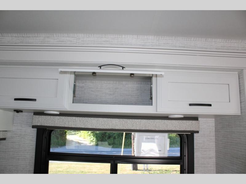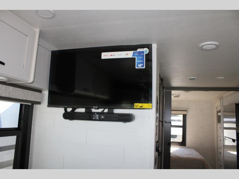 Travel to see new places and enjoy interior comforts as well as outdoor entertainment with this coach! After easily setting up the 23' electric awning you can relax and unwind while taking in the scenery or watching the the exterior LED HD Smart TV. The chef can utilize the outside kitchen or the full kitchen amenities inside such as a 10 cu. ft. refrigerator, the Furrion all-in-one cooktop and oven, plus a residential-size microwave. There is even a pop-up charging center. Enjoy privacy in the rear bedroom while you sleep on the walk-around queen bed, and add the TV option if you like. You will find seating in the main area on the Jayco-exclusive easy-operation legless dinette table and the jack-knife sofa, or choose the theater seating option. The cockpit table also gives you another surface to place your things while you sit in the driver and passenger seats that swivel. If you're needing additional sleeping space, just choose the drop-down overhead bunk option!