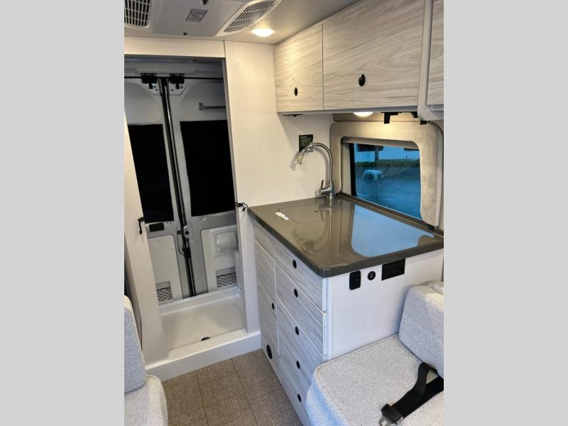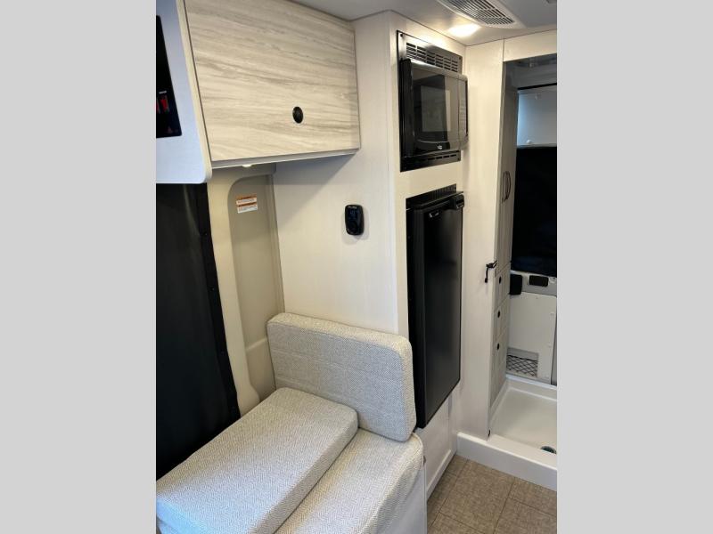 Enjoy every trip you take in this small, but mighty camper van! You will enjoy the drive just as much as the destination with a 10.1" Uconnect 5 NAV infotainment center and a ParkView rear backup camera. There is a 54" sofa to relax on once you park, and at night you can convert the sofa to a 54" x 72" bed. And the 27" bench seat is close by the entrance to provide a place to pull on your hiking boots. After you've worked up an appetite outdoors, you can prepare lunch on the portable induction cooktop, clean up with the stainless steel sink with a cover, and store leftovers in the 3 cu. ft. refrigerator/freezer. This model also includes a rear wet bath so you can freshen up before bed, and the bath wardrobe will let you keep your clothes and towels tidy!