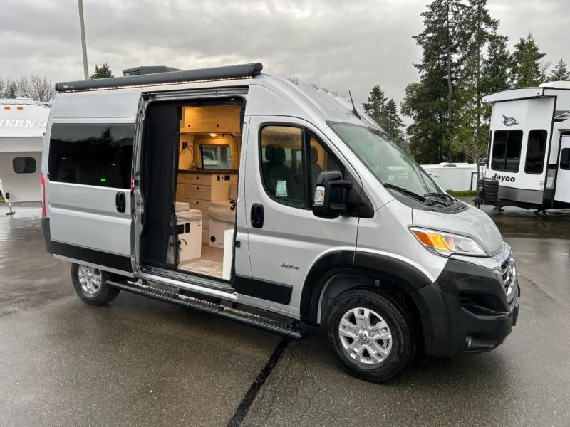 The small and nimble Comet Class B gas motorhome by Jayco is ready for adventure when you are! You'll appreciate the RAM ProMaster 1500 cargo van chassis for a strong and durable foundation, and the 17' 10" overall length means you can easily squeeze into parking spots even in the big city. There are added safety features for your peace of mind, like the LaneSense lane departure warning, drowsy driver detection, and forward collision warning with active braking. An Aqua-Hot GEN-1 hydronic water and heating system will provide hot water and heat when you need it, and the Winegard Connect 2.0 4G/Wi-Fi/digital TV antenna will help keep you connected as you're away from home. You'll be surprised by the interior comforts and functionality found in this compact camper van, including a convertible sofa/bed, residential vinyl flooring, swivel seats, and an adjustable table with multiple mounts to name a few!