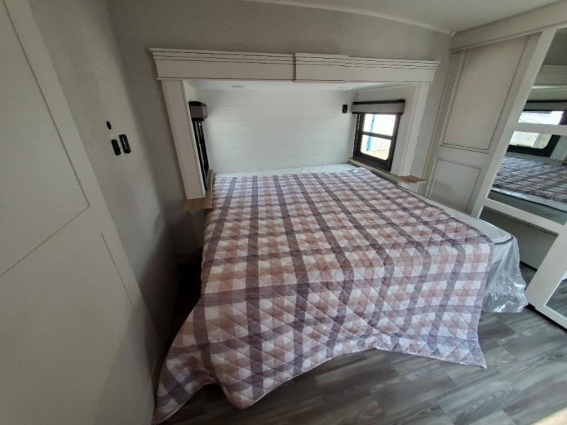 With any Eagle fifth wheel by Jayco you will appreciate durable construction materials, like the Magnum Truss Roof and the Stronghold VBL laminated walls. The JAYCOMMAND Smart RV system puts you in control of your RV's functions, and the 5 Star Handling Package will provide smooth towing from home to camp. Each model features Climate Shield zero-degree tested weather protection and the industry-exclusive HELIX cooling system that features two 15,000 BTU Whisper Quiet A/C's to keep you comfortable year around. Some of the exterior conveniences you are sure to love are the pass-through storage with Slam-Latch baggage doors and an automotive style front cap with max turn radius. The Eagle fifth wheels are designed to make you feel at home with solid hardwood slide fascia, residential vinyl flooring throughout, 100% no floor vents, and blackout roller shades with reflective side throughout for added privacy and insulation.