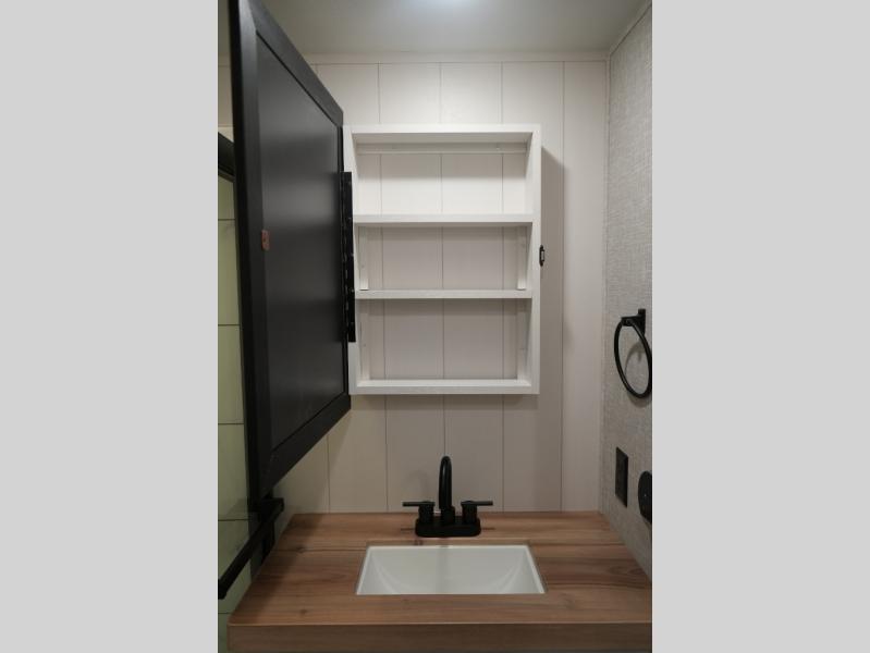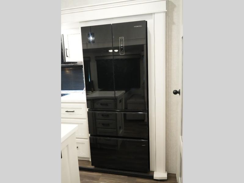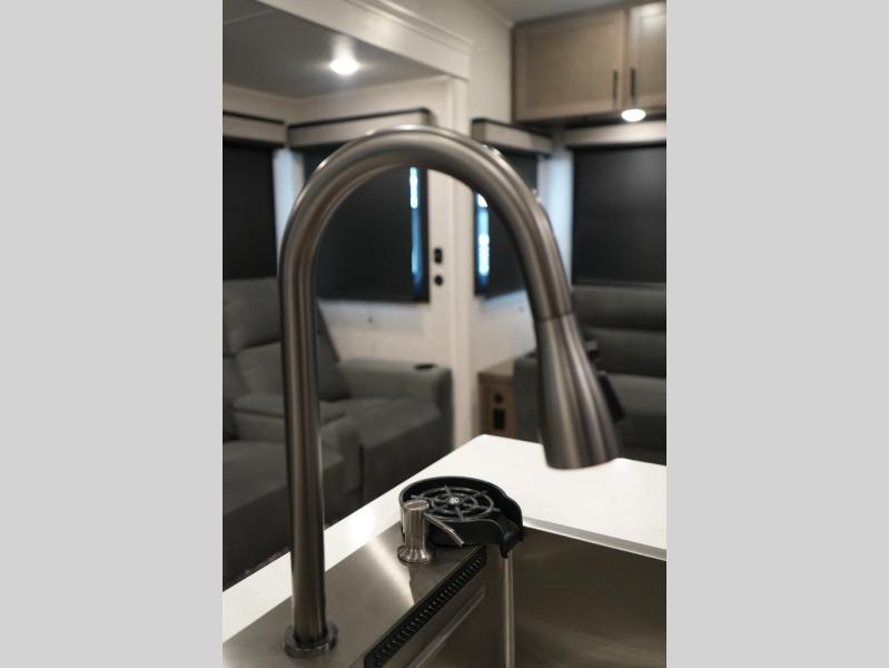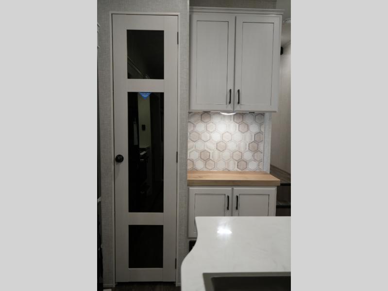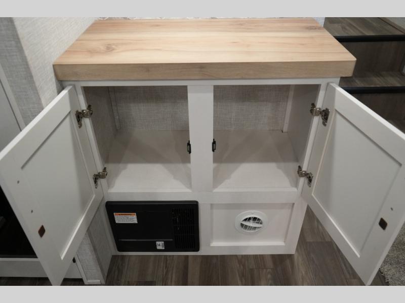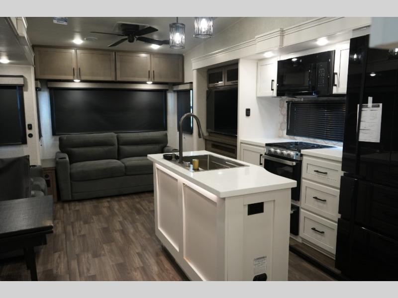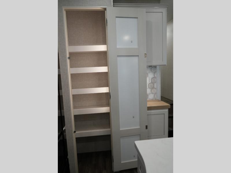 Gourmet Kitchen – Center island, pantry, 16 cu. ft. 12V fridge, hutch, and multi-functional sink