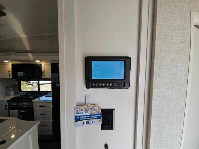 With any Eagle fifth wheel by Jayco you will appreciate durable construction materials, like the Magnum Truss Roof and the Stronghold VBL laminated walls. The JAYCOMMAND Smart RV system puts you in control of your RV's functions, and the 5 Star Handling Package will provide smooth towing from home to camp. Each model features Climate Shield zero-degree tested weather protection and the industry-exclusive HELIX cooling system that features two 15,000 BTU Whisper Quiet A/C's to keep you comfortable year around. Some of the exterior conveniences you are sure to love are the pass-through storage with Slam-Latch baggage doors and an automotive style front cap with max turn radius. The Eagle fifth wheels are designed to make you feel at home with solid hardwood slide fascia, residential vinyl flooring throughout, 100% no floor vents, and blackout roller shades with reflective side throughout for added privacy and insulation.
