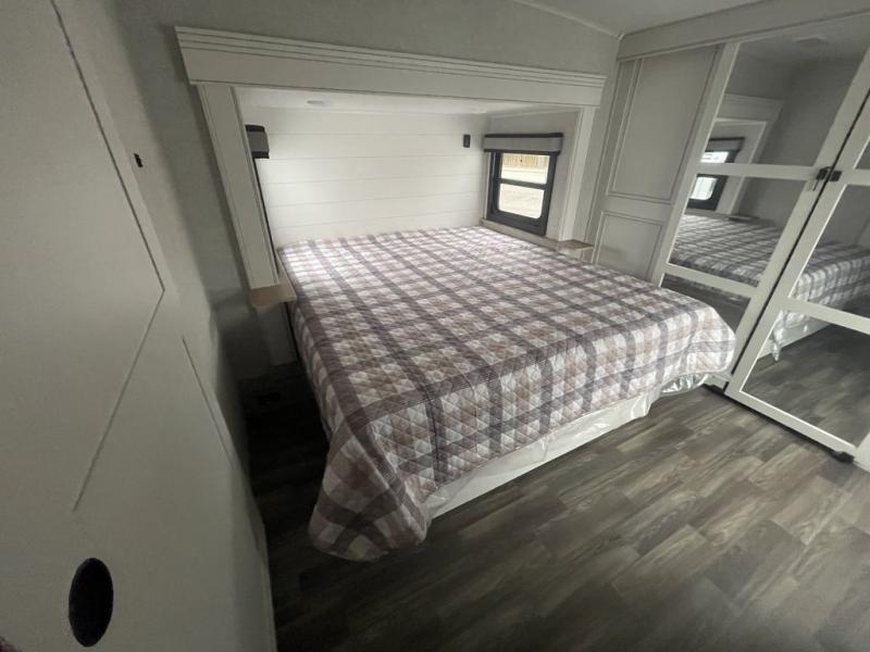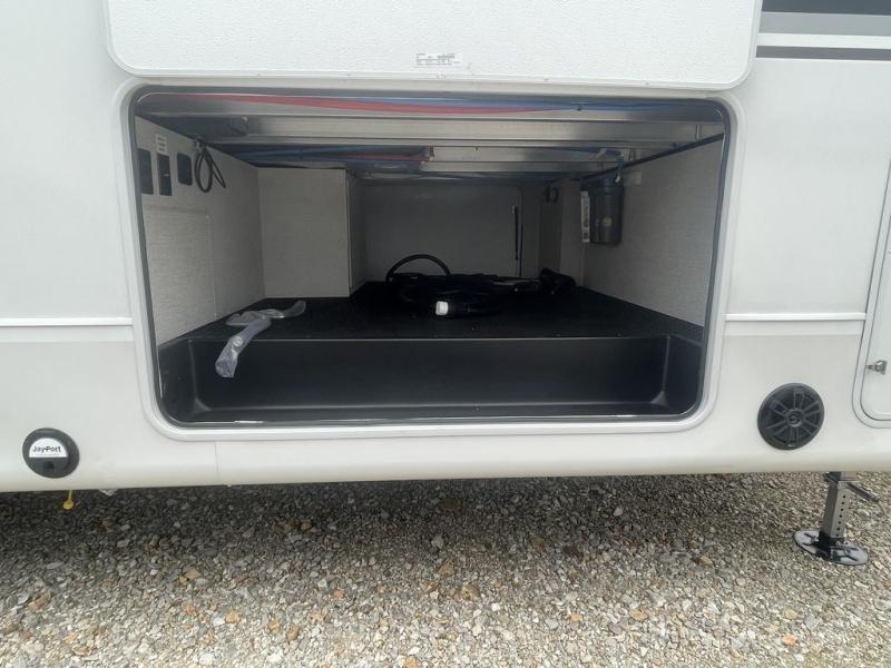 With any Eagle fifth wheel by Jayco you will appreciate durable construction materials, like the Magnum Truss Roof and the Stronghold VBL laminated walls. The JAYCOMMAND Smart RV system puts you in control of your RV's functions, and the 5 Star Handling Package will provide smooth towing from home to camp. Each model features Climate Shield zero-degree tested weather protection and the industry-exclusive HELIX cooling system that features two 15,000 BTU Whisper Quiet A/C's to keep you comfortable year around. Some of the exterior conveniences you are sure to love are the pass-through storage with Slam-Latch baggage doors and an automotive style front cap with max turn radius. The Eagle fifth wheels are designed to make you feel at home with solid hardwood slide fascia, residential vinyl flooring throughout, 100% no floor vents, and blackout roller shades with reflective side throughout for added privacy and insulation.