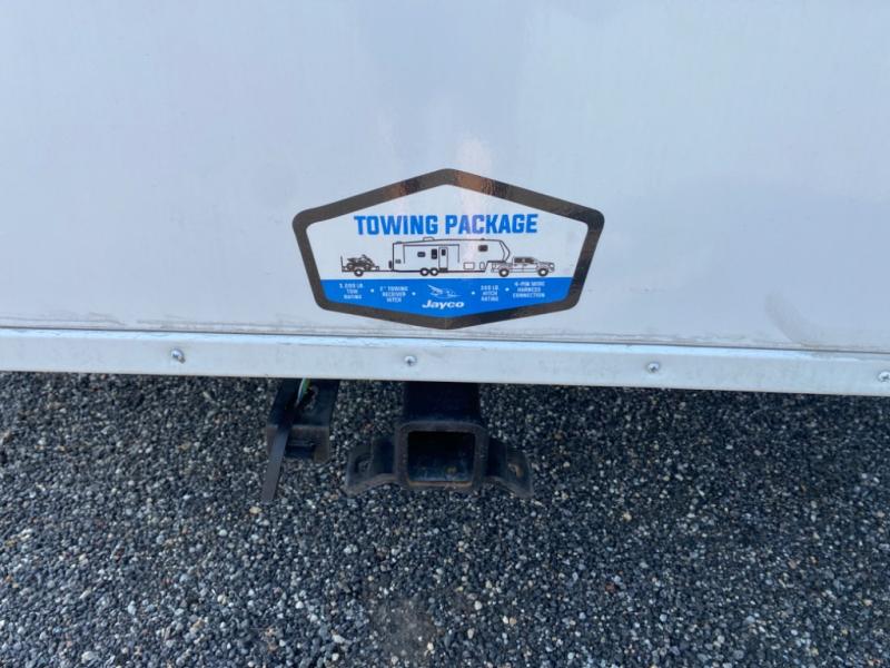 With any Eagle fifth wheel or travel trailer by Jayco you will appreciate durable construction materials, like the Magnum Truss Roof and the Stronghold VBL laminated walls. The JAYCOMMAND Smart RV system puts you in control of your RV's functions, and the 5 Star Handling Package will provide smooth towing from home to camp. Each model features Climate Shield zero-degree tested weather protection and the industry-exclusive HELIX cooling system that features two 15,000 BTU Whisper Quiet A/C's to keep you comfortable year around. Some of the exterior conveniences you are sure to love are the pass-through storage with Slam-Latch baggage doors and an automotive style front cap with max turn radius. The Eagle fifth wheels and travel trailers are designed to make you feel at home with solid hardwood slide fascia, residential vinyl flooring, a bathroom skylight, and plenty of storage for all your belongings.