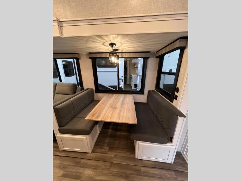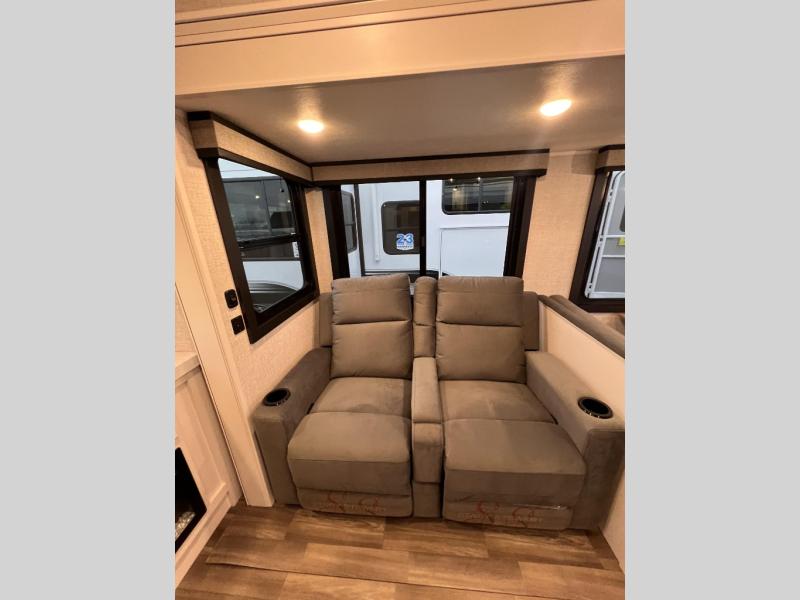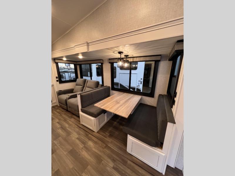 The Jayco Eagle HT Fifth Wheel is an excellent introduction to fifth wheel RVing without the full commitment. Because it can be towed by a half-ton truck, there’s no need to invest in a large tow vehicle with a powerful engine and high towing capacity. You’ll likely be able to tow it with what you already have in the garage, and at a lower price point, lower weight and smaller size, the Eagle HT Fifth Wheel is the perfect option for someone dipping their toe into fifth wheel ownership. In addition to being easy to tow, the Eagle HT Fifth Wheel allows you to tow up to 3,000 lbs., so you can bring your toys along for the ride. Chain hookup and break harness hookups are already set up for your convenience.