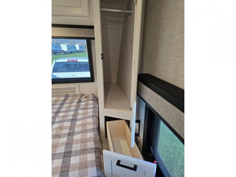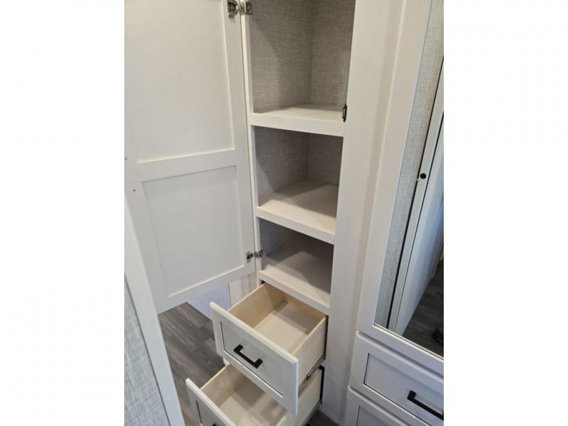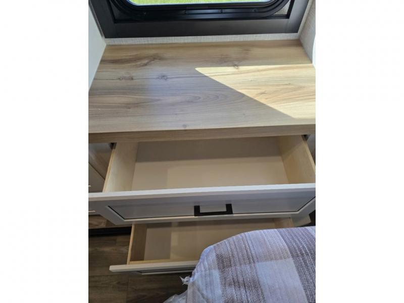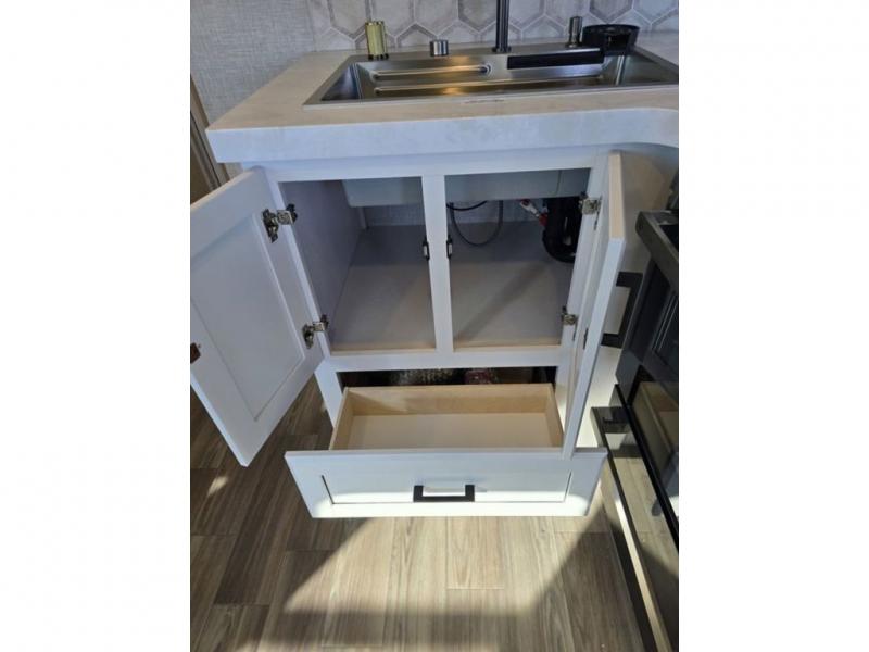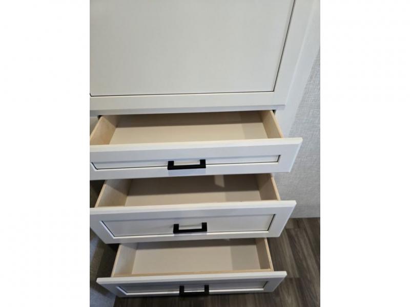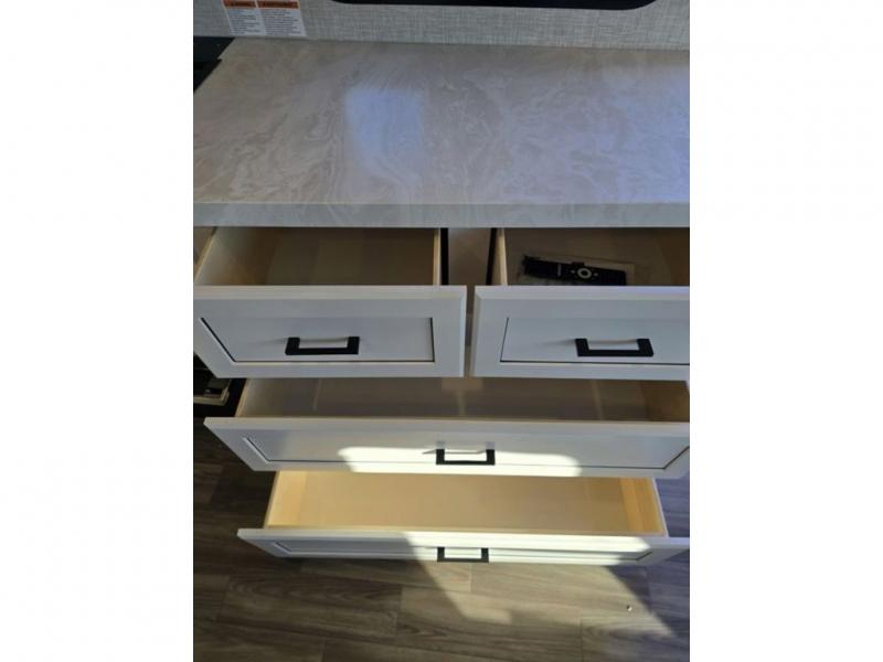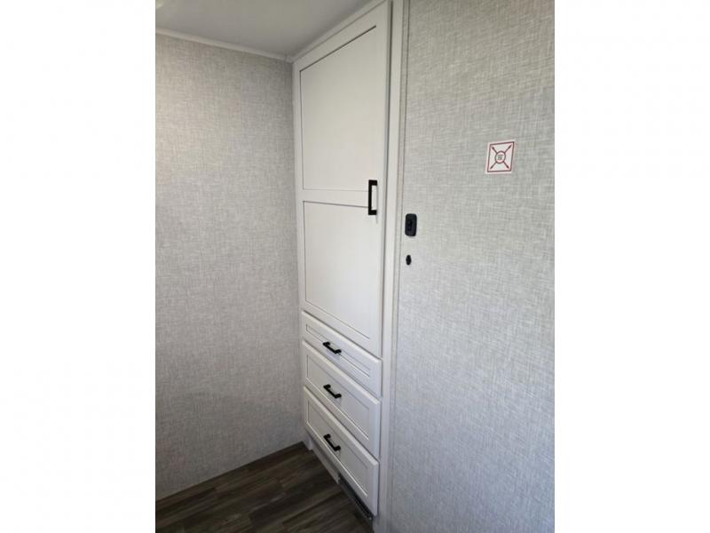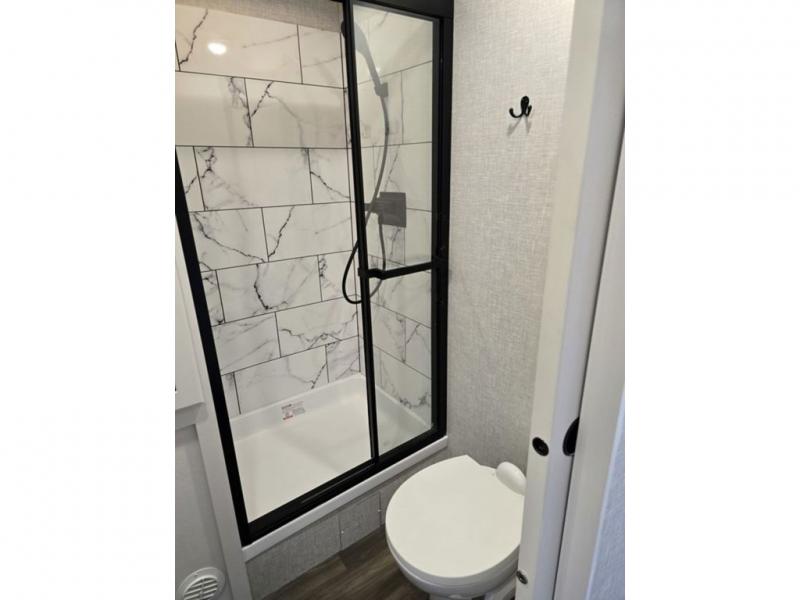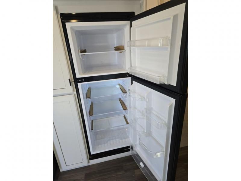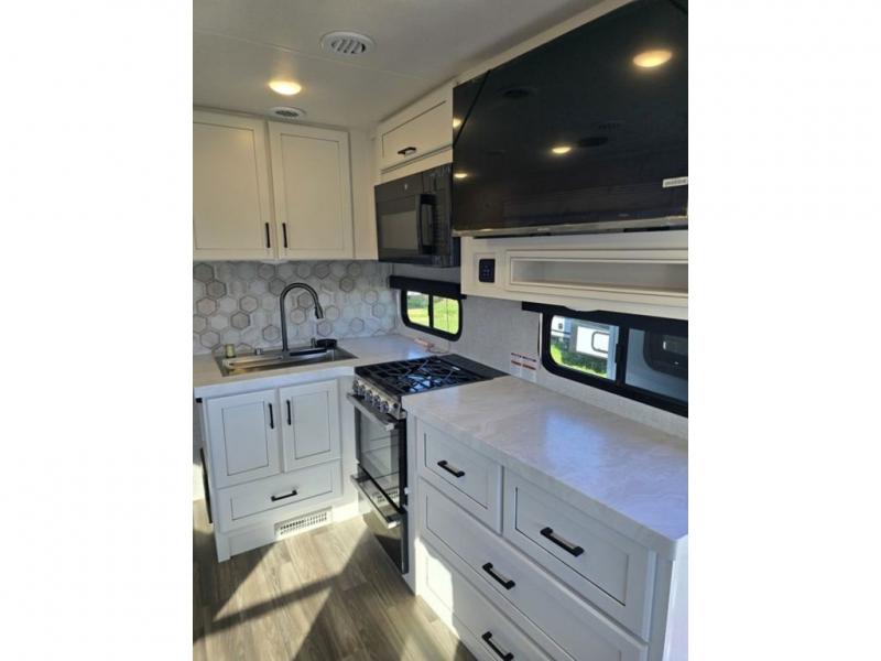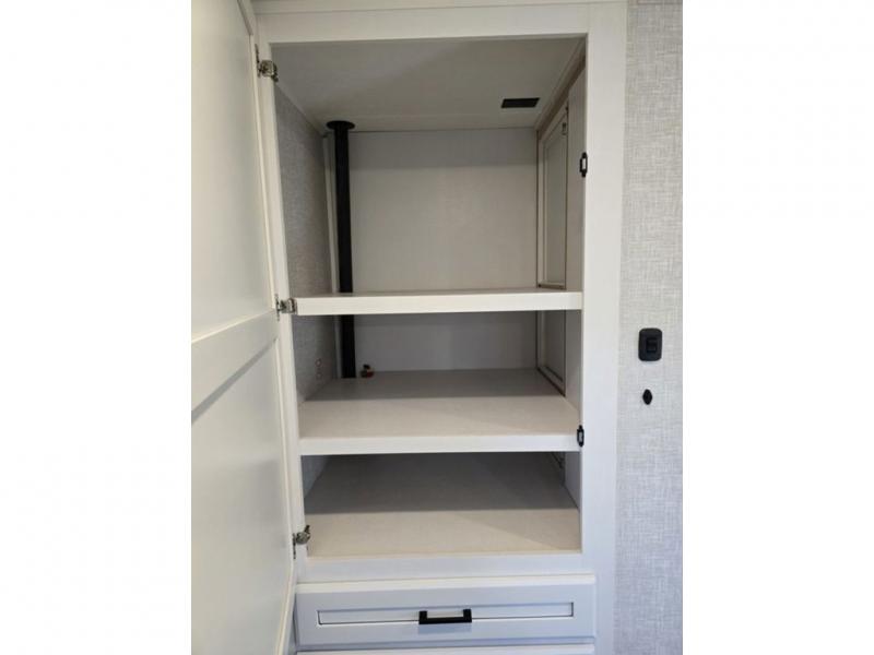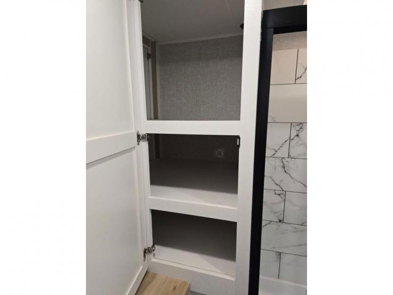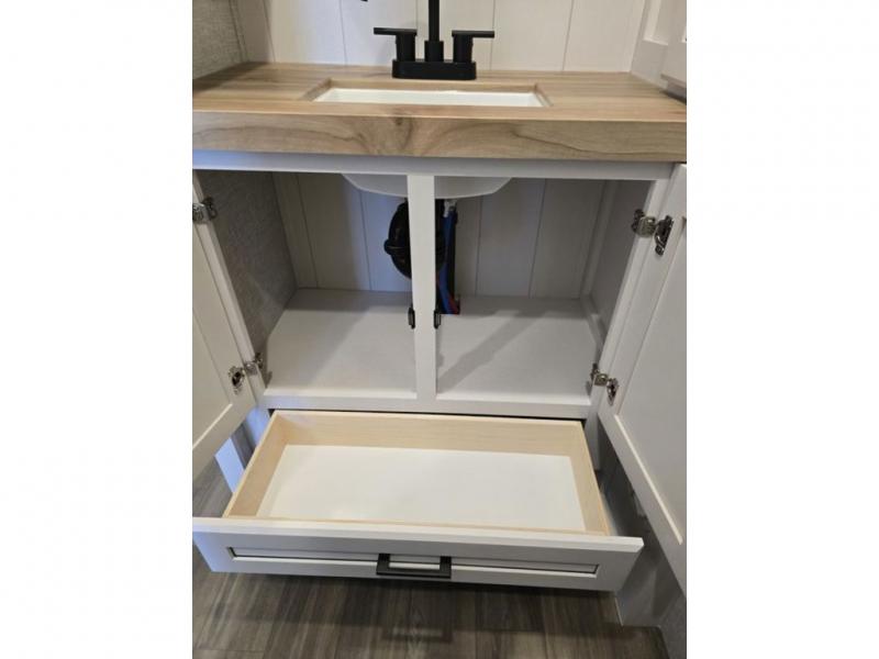 Wherever you decide to camp, you can count on at-home comforts with this travel trailer in tow! The large slide out in the main living area will provide your crew with more space to relax, and here you'll find a theater sofa in perfect view of the 40" 4K Ultra LED HD Smart TV. Once the chef of your group has prepared lunch on the three burner range, you can dine at the U-shaped dinette that will also double as your guests sleeping space at night. Up front, the private bedroom awaits you with an Olympic queen bed, dual wardrobes plus a bedroom slide out with a dresser, linen closet, and a wardrobe. This model also includes a full bath and a wardrobe with washer and dryer prep that will give the option to add those appliances!