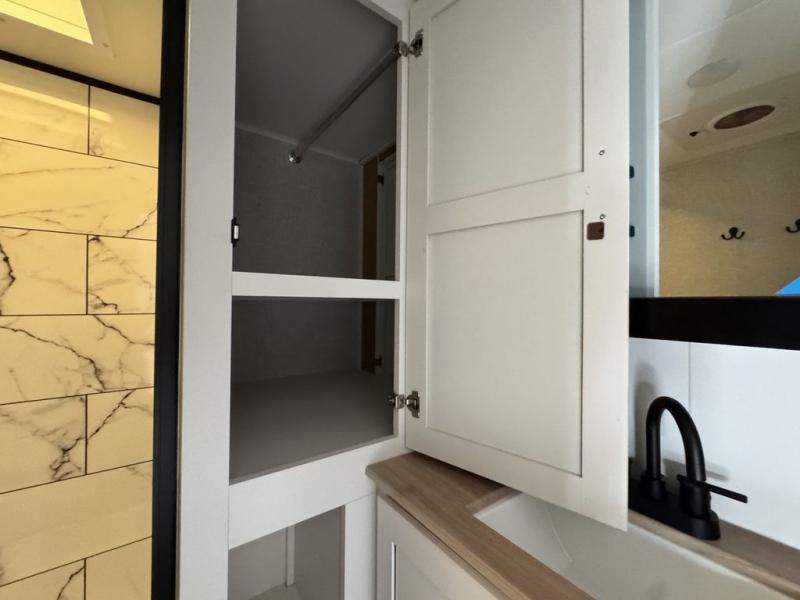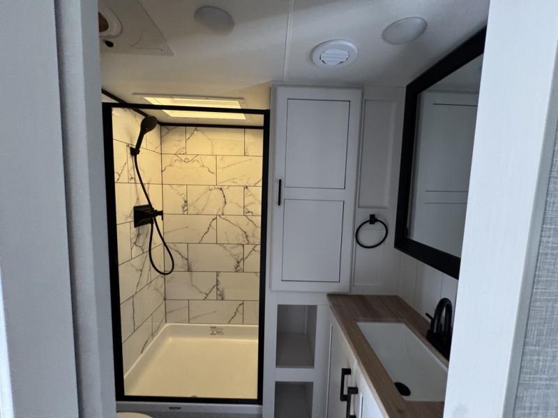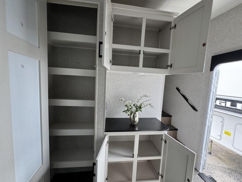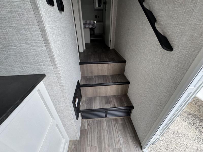 With any Eagle SLE fifth wheel by Jayco, you will enjoy a lighter tow weight, high-end finishes, and the same quality construction you've come to expect from Jayco! There is an Alpha Ply TPO roof membrane, a fully enclosed and heated underbelly, plus Stronghold VBL walls for added durability. There is also a rear 2" towing receiver outside, along with metal slam latch baggage doors, MORryde Step Above entry steps, and a Winegard Air 360 antenna with router prep if you want to stay connected as you camp. Once inside you'll enjoy the handcrafted and glazed door/drawer fronts, blackout pleated shades throughout, and residential vinyl flooring throughout with no carpet for an easier clean. The on-demand water heater, 30K BTU furnace, and 15K BTU "Whisper Quiet" A/C will ensure your comfort year around, and the optional Overland 1 Solar Package can be added if you need off-grid capabilities!