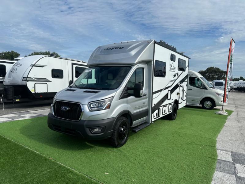 Take your adventures further with the Jayco Granite Ridge 22T, a compact yet capable Class C gas motorhome built on a Ford Transit 350HD chassis with All-Wheel Drive. Whether you're heading into the mountains or setting up at a quiet campsite, this coach offers comfort, flexibility, and the power to get you there.