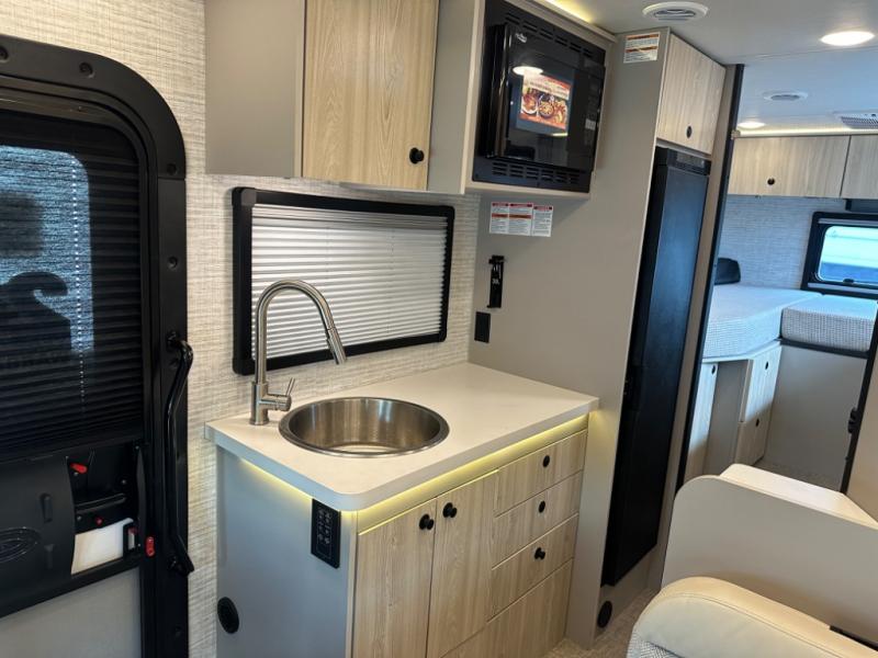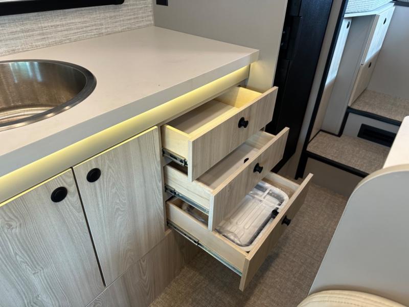 Inside, you’ll find pressed countertops, residential vinyl flooring, LED lighting, and a soft-touch ceiling, all designed to provide a modern, livable space in a compact footprint. The power, versatility, and smart layout make this motorhome ideal for both weekend trips and extended travel.