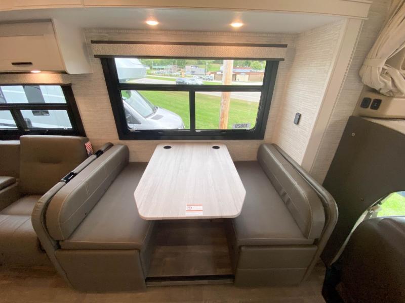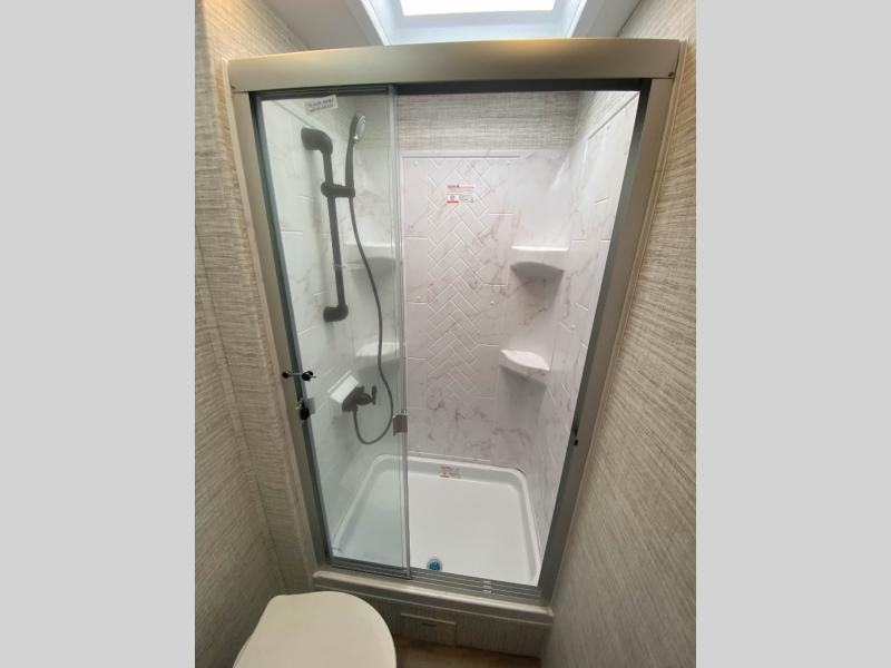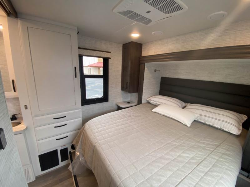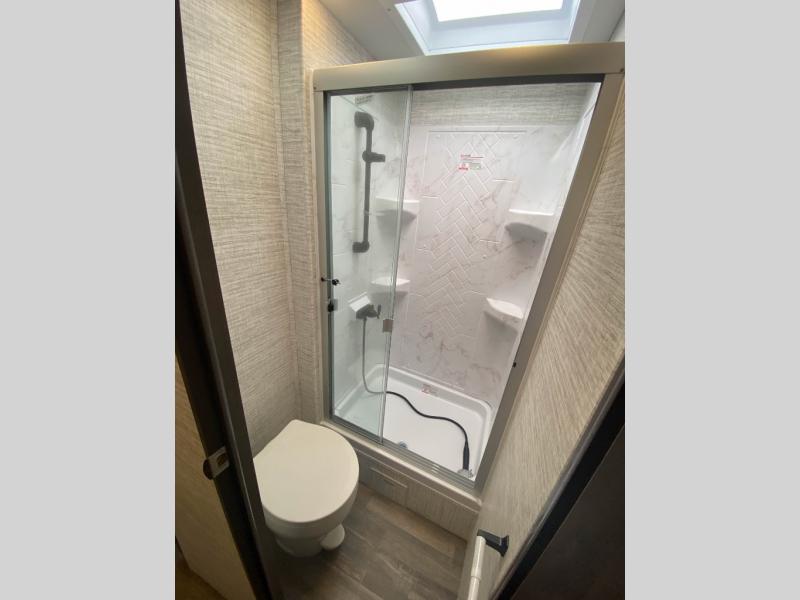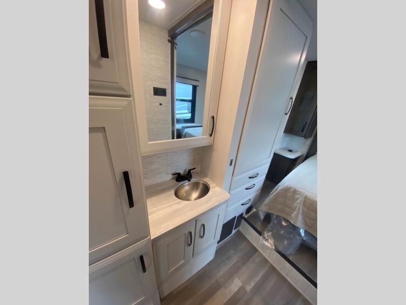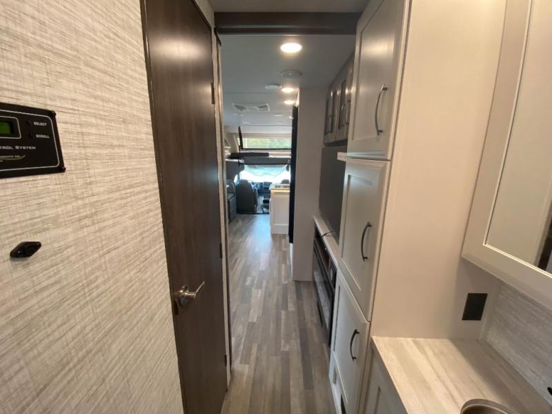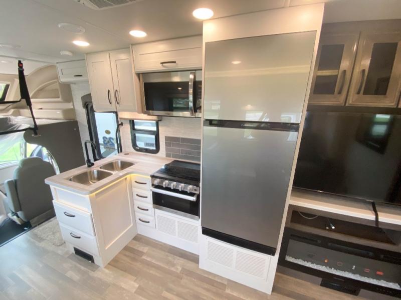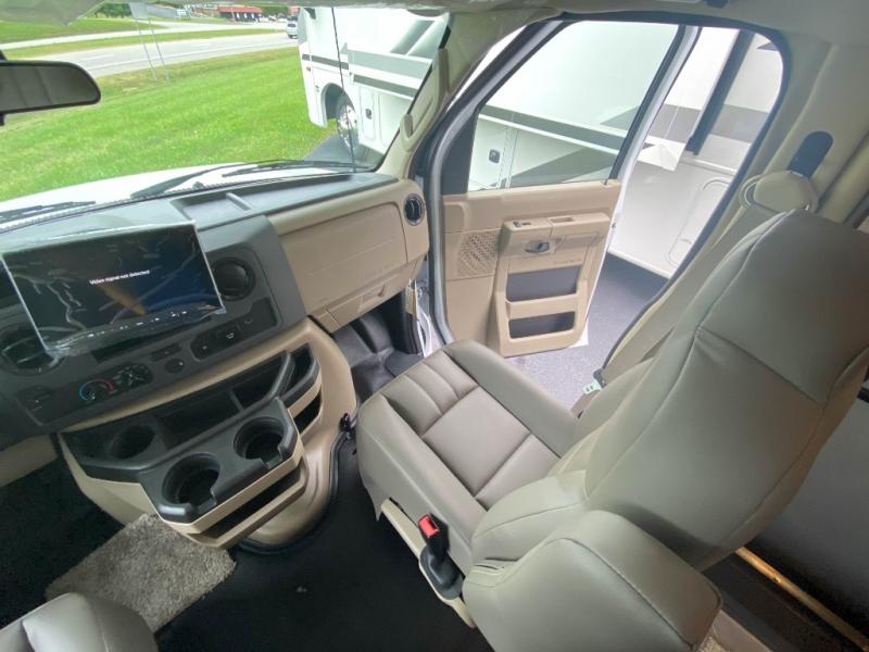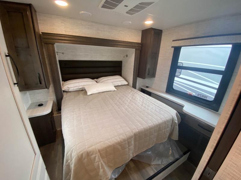 With any Greyhawk Class C gas motorhome by Jayco you will experience smooth sailing thanks to the JRIDE PLUS that comes with Koni shock absorbers, a computer-balanced driveshaft, Hellwig helper springs, and more. The Ford E-450 chassis with a 7.3L V8 325 HP engine will power your excursions, and you'll appreciate the added safety features for your peace of mind. Each model features a Sony infotainment center with Apple CarPlay and Android Auto, backup and side-view cameras, and a tire pressure monitor system the driver is sure to appreciate. Durable construction begins with Stronghold VBL roof, floor and sidewalls, bead-foam insulation, and a one-piece seamless fiberglass front cap. Head inside to find blackout night roller shades, LED-lit pressed countertops, an 84" interior ceiling height, and hardwood cabinet doors and drawers.